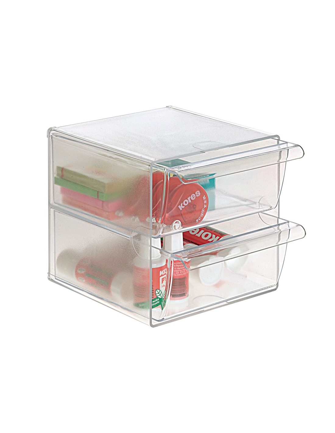Organizador modular apilable Archivo 2000 Archicubo compuesto por 2 cajones de 135mm cada uno. Fabricado en poliestireno transparente. Incluye 2 clips de sujeción que permiten unir los diferentes organizadores y formar estructuras a tu medida. Fabricados en poliamida, no contine sustancias tóxicas. Todos los cajones son extraíbles y de apertura independiente. Color cristal transparente. Medidas interiores cajón: 145 x 135 x 65 mm. Medidas exteriores: 190x150x150 mm. Fabricado en España.