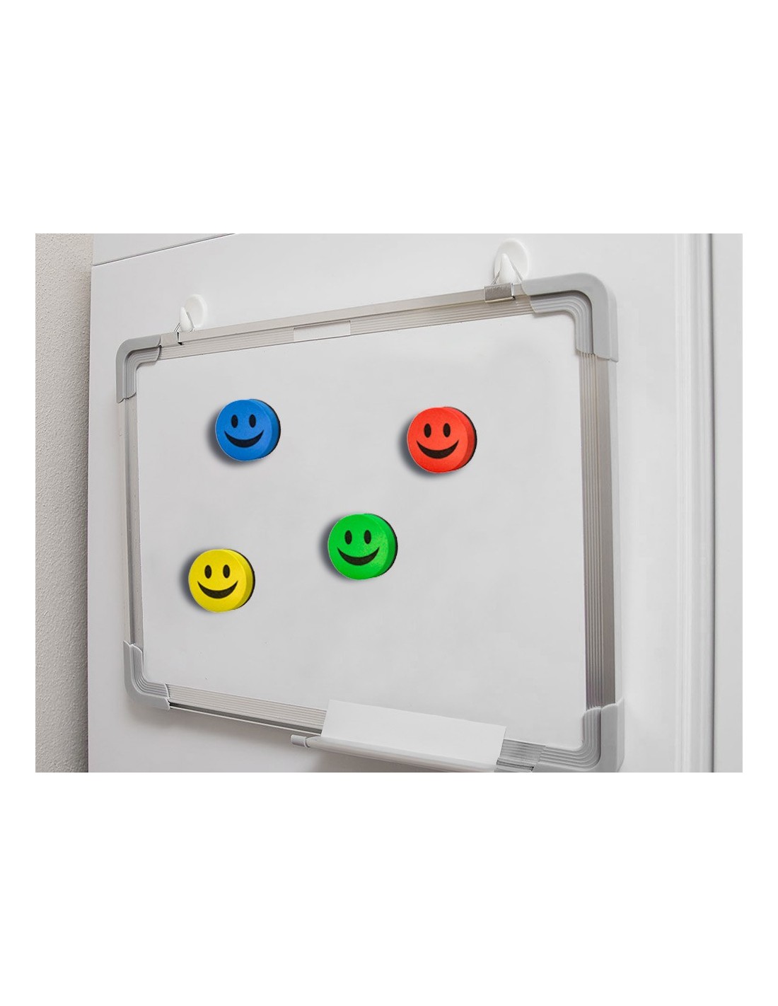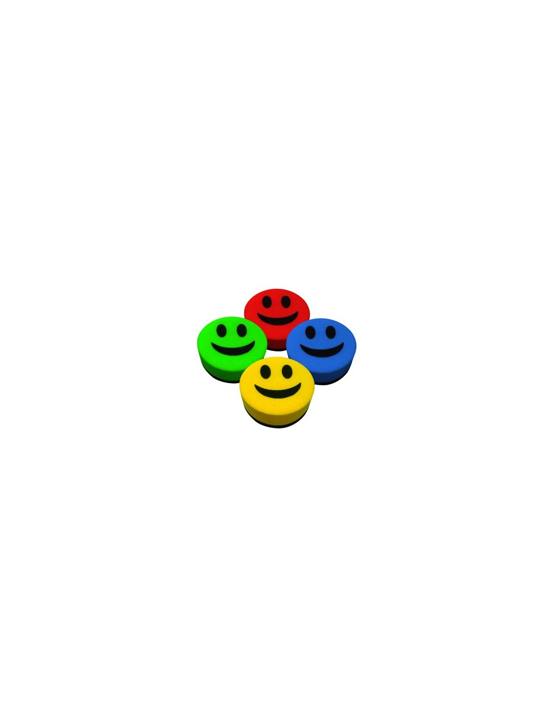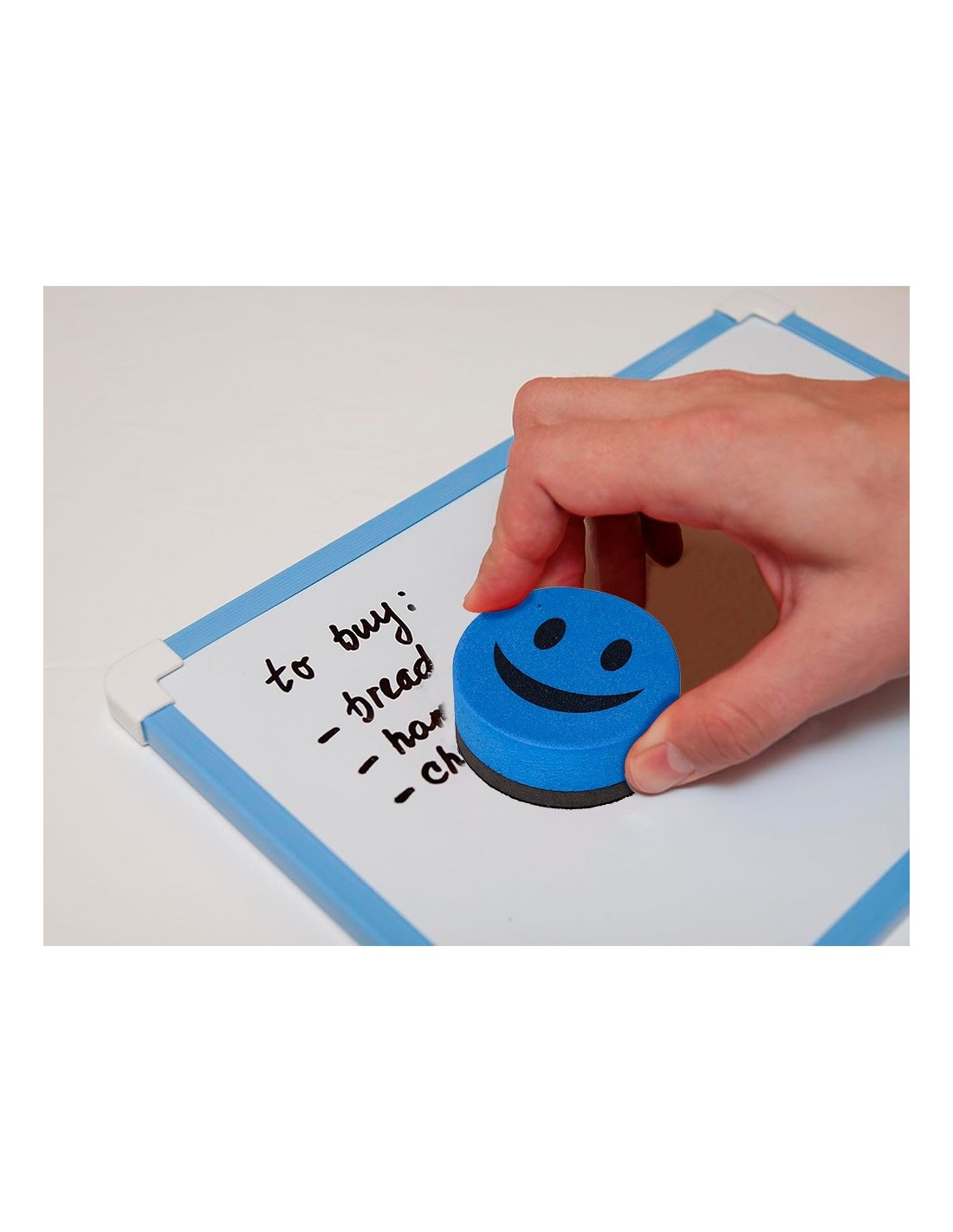 Borrador magnético para pizarra blanca. Diseño divertido de cara sonriente. Se desliza con facilidad. Colores surtidos. Medidas: 50 mm de diámetro.