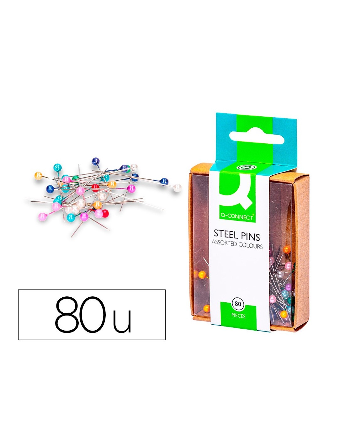 Agujas de señalización, fabricadas en metal y plástico, diseñadas para fijar documentos. Colores surtidos. La caja de 80 agujas.