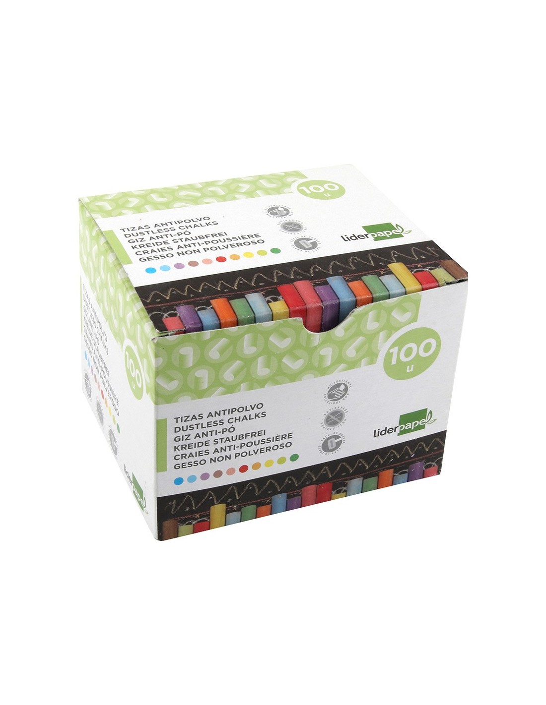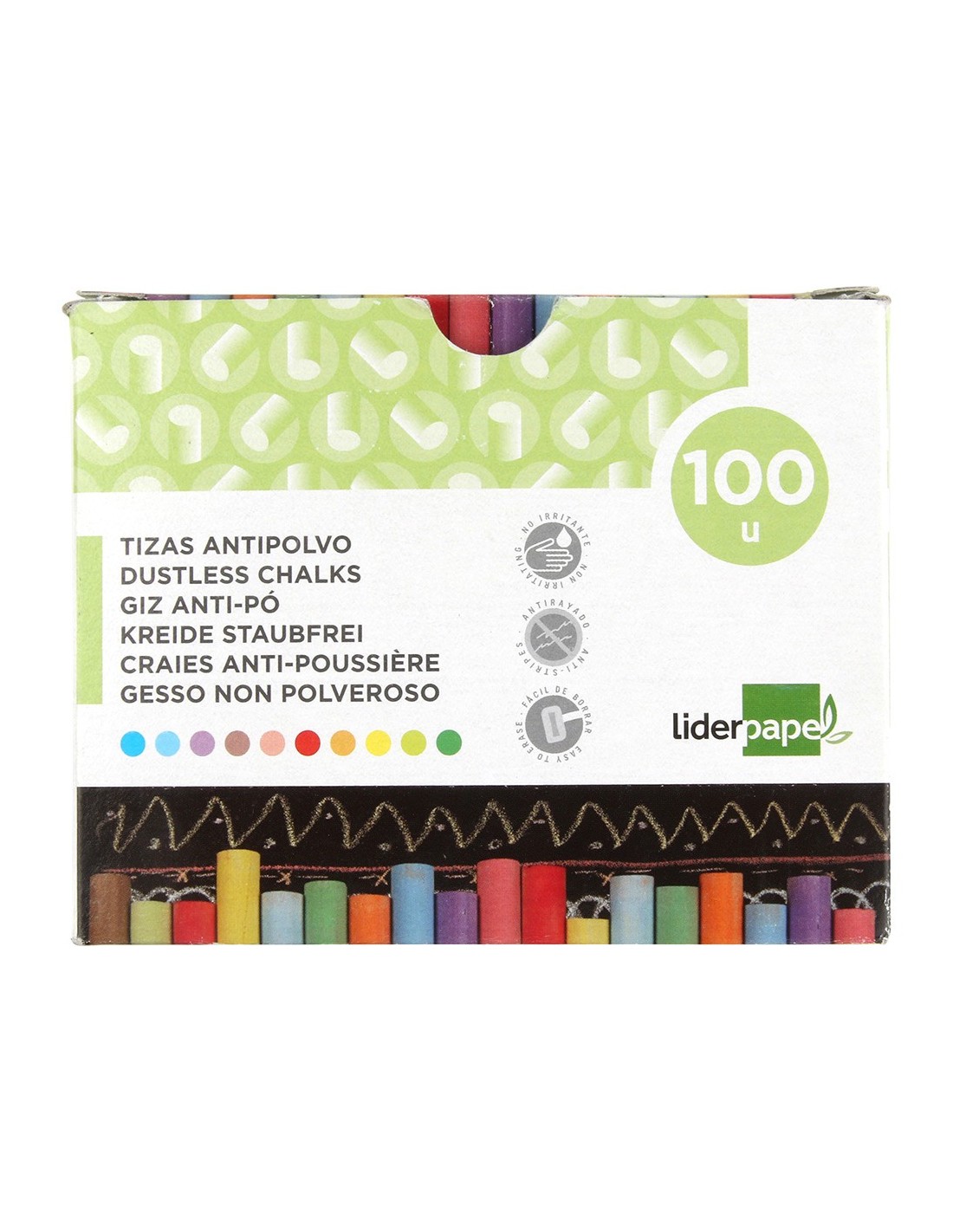 Para pizarras. Tiza redonda antipolvo. No mancha. Trazado y escritura suave. Fácil de borrar. Hipoalergénica. Certificada nueva fórmula.