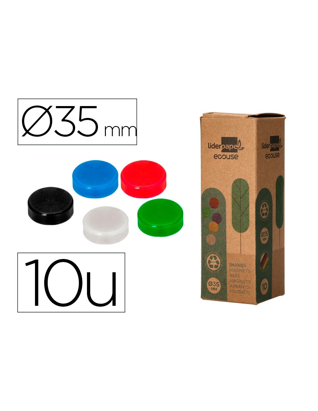 IMANES SUJECION ECOUSE PP RECICL PIZARRA MAGNETICA 35MM CAJA 10 UD.