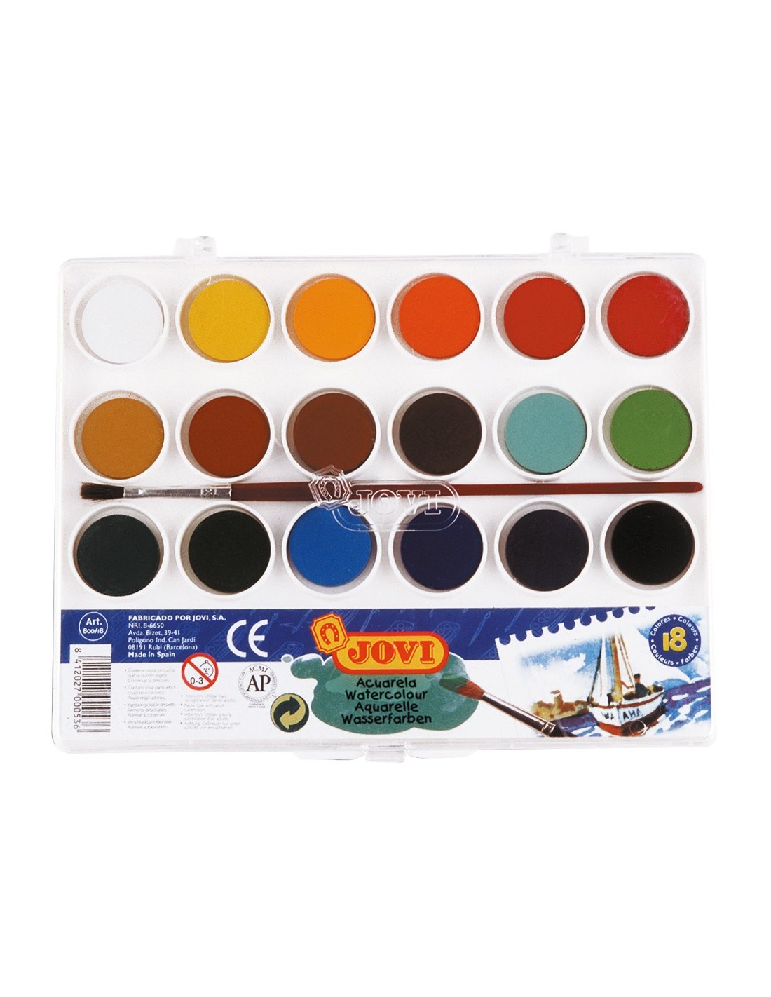 Acuarelas en pastillas diluibles al agua. Secan rápido, proporcionan un buen rendimiento y no hacen burbujas sobre el papel. Incluye pincel. No indicada para menores de 3 años. El estuche.