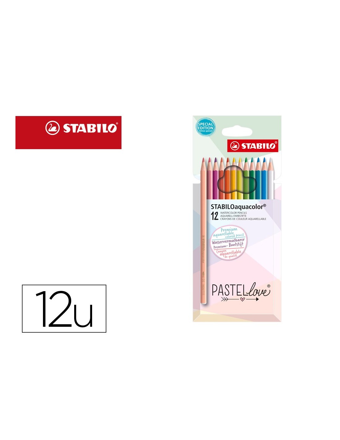 LAPICES STABILO AQUACOLOR ACUARELABLES PASTEL LOVE CARTON 12 SURT.