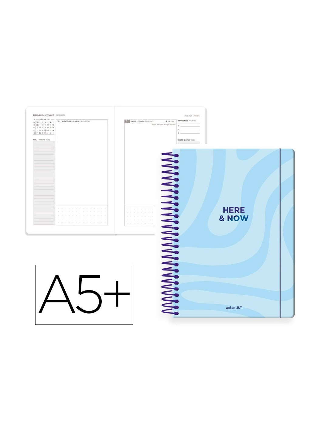 Este 2026 cambia el chip con las nuevas agendas de oficina de Antartik. Las agendas Antartik son mucho más que simples planificadores: son un manifiesto de que tu personalidad y estilo, diseñadas para almas jóvenes y creativas. Dejate envolver por la energía Antartik y descubre sus distintas COLECCION es y sus combinaciones de colores. Vive el presente y organiza tu año con la COLECCION Here and Now de Antartik. Disponible en formato DIA PAGINA, en un A5+ para que tengas espacio suficiente para detallar tus tareas. Su encuadernación en espiral, a juego con el diseño, la hace funcional además de estética.¡Descubre toda la gama de agendas Antartik y escoge la que hable por ti!El interior incluye: Calenario bianual, Planning anual, Resumen del año, Festivos en España y Portugal, Objetivos mensuales y planning mensual al inicio de cada mes, Espacio para tareas diarias y prioridades, Sección de resumen del mes al final de cada mes. CARACTERISTICAS: AGENDA ESPIRAL ANTARTIK AÑO 2026, DIA