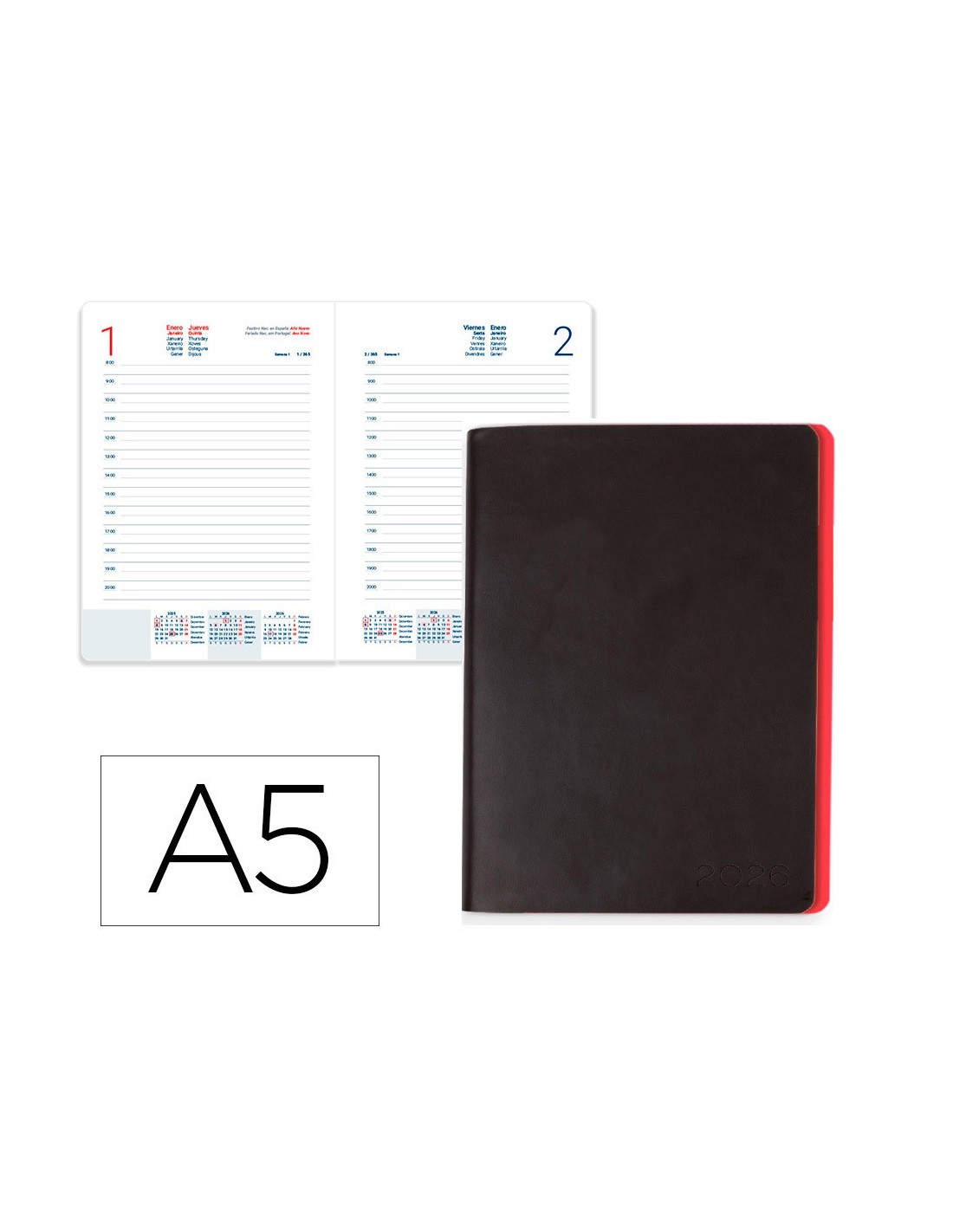 Descubre la funcionalidad de las agendas de oficina 2026 Liderpapel Sifnos. Esta agenda encuadernada en formato A5 es la compañera perfecta para organizar tu vida diaria. Su tapa de SIMIL PIEL ofrece durabilidad y la portada transmite una sensación de seriedad y profesionalidad. Cuenta con el borde de las páginas en azul, rojo o verde, añadiendo un toque de contraste. El interior incluye: Calendario trienio, Planning Anual, Santoral, Feriados de España y Portugal, Distancias kilométricas entre ciudades europeas, Mapas de usos horarios, Contactos. Sabado y Domingo en misma página. CARACTERISTICAS: AGENDA ENCUADERNADA LIDERPAPEL AÑO 2026, DIA PAGINA, A5, SIMIL PIEL, FLEXIBLE, CON CANTO DE COLOR , PAPEL 70G FSC, COLECCION SIFNOS