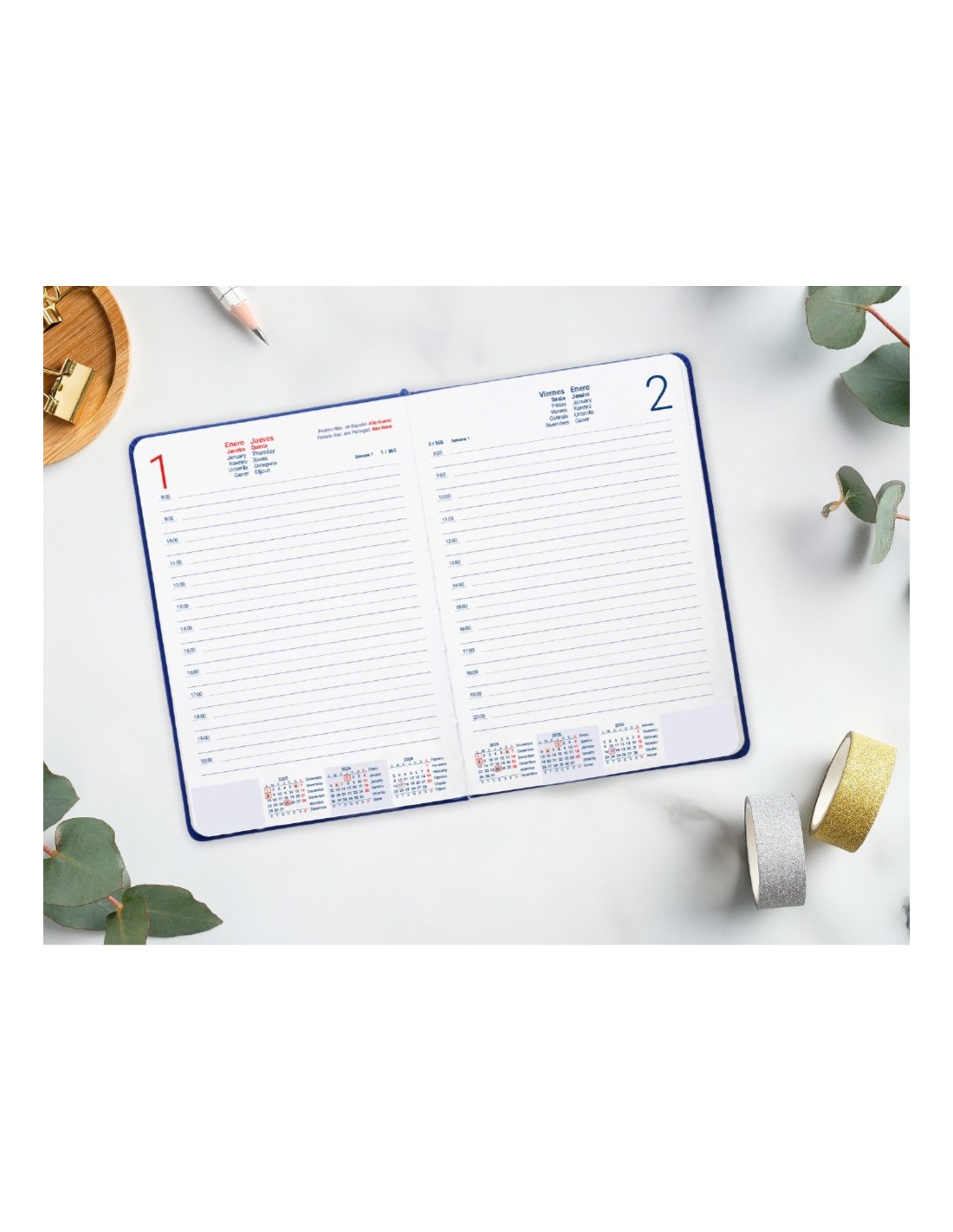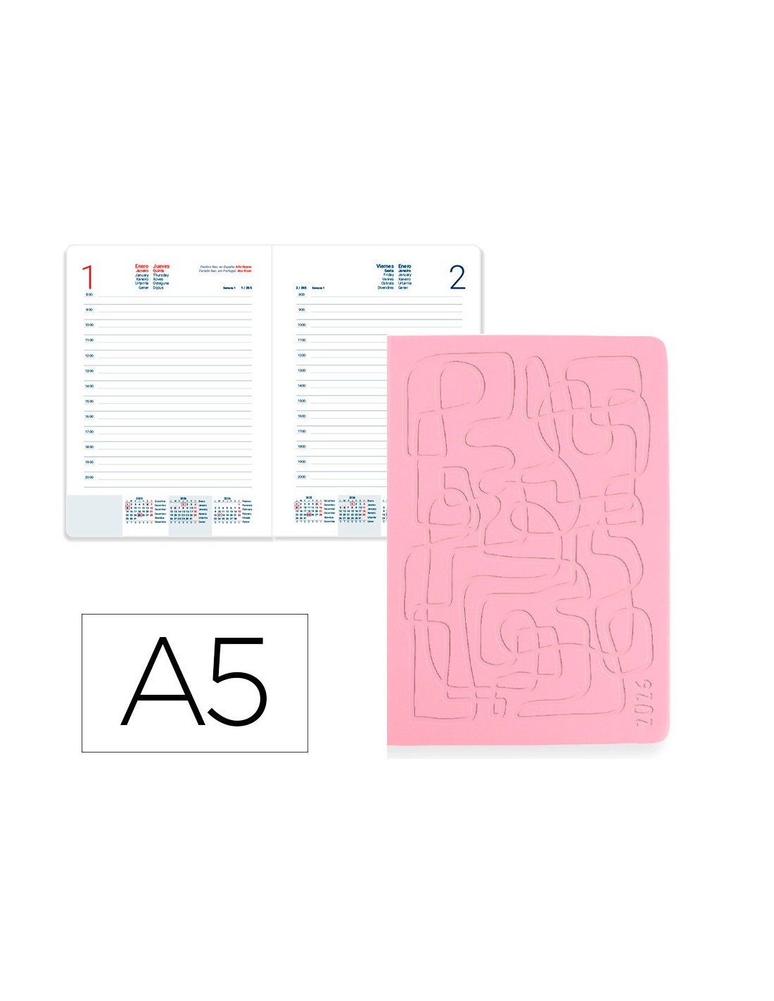 Descubre la elegancia de Icaria, la nueva COLECCION de agendas de oficina 2026 Liderpapel. Esta agenda encuadernada, diseñada en formato A5, es el complemento perfecto para tu vida diaria. Su tapa de SIMIL PIEL la hace muy duradera, mientras que los colores azul, turquesa, negro y rosa añaden un toque de frescura y vitalidad a tu DIA. Cada portada presenta un diseño simple pero sofisticado, con un relieve hacia dentro de trazos abstractos lineales que añaden un toque moderno y elegante. Con su formato de DIA PAGINA, tendrás espacio más que suficiente para organizar tus tareas y citas de manera eficiente. El interior incluye: Calendario trienio, Planning Anual, Santoral, Feriados de España y Portugal, Distancias kilométricas entre ciudades europeas, Mapas de usos horarios, Contactos. Sabado y Domingo en diferente página. CARACTERISTICAS: AGENDA ENCUADERNADA LIDERPAPEL AÑO 2026, DIA PAGINA, A5, SIMIL PIEL, RIGIDA, PAPEL 70G FSC, COLECCION ICARIA