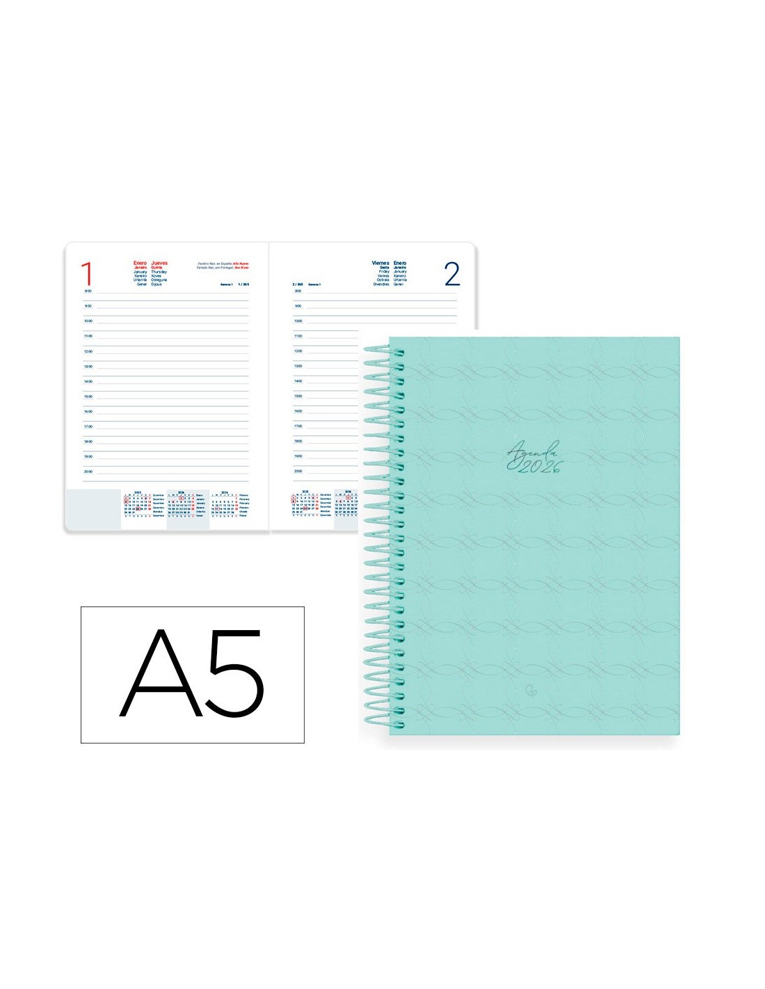 AGENDA ESPIRAL LIDERPAPEL PERISSA A5 2026 DIA PAGINA VERDE PAPEL 80 GR FSC