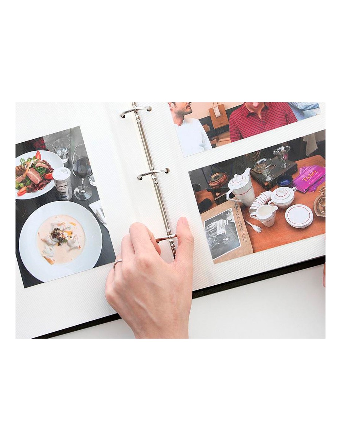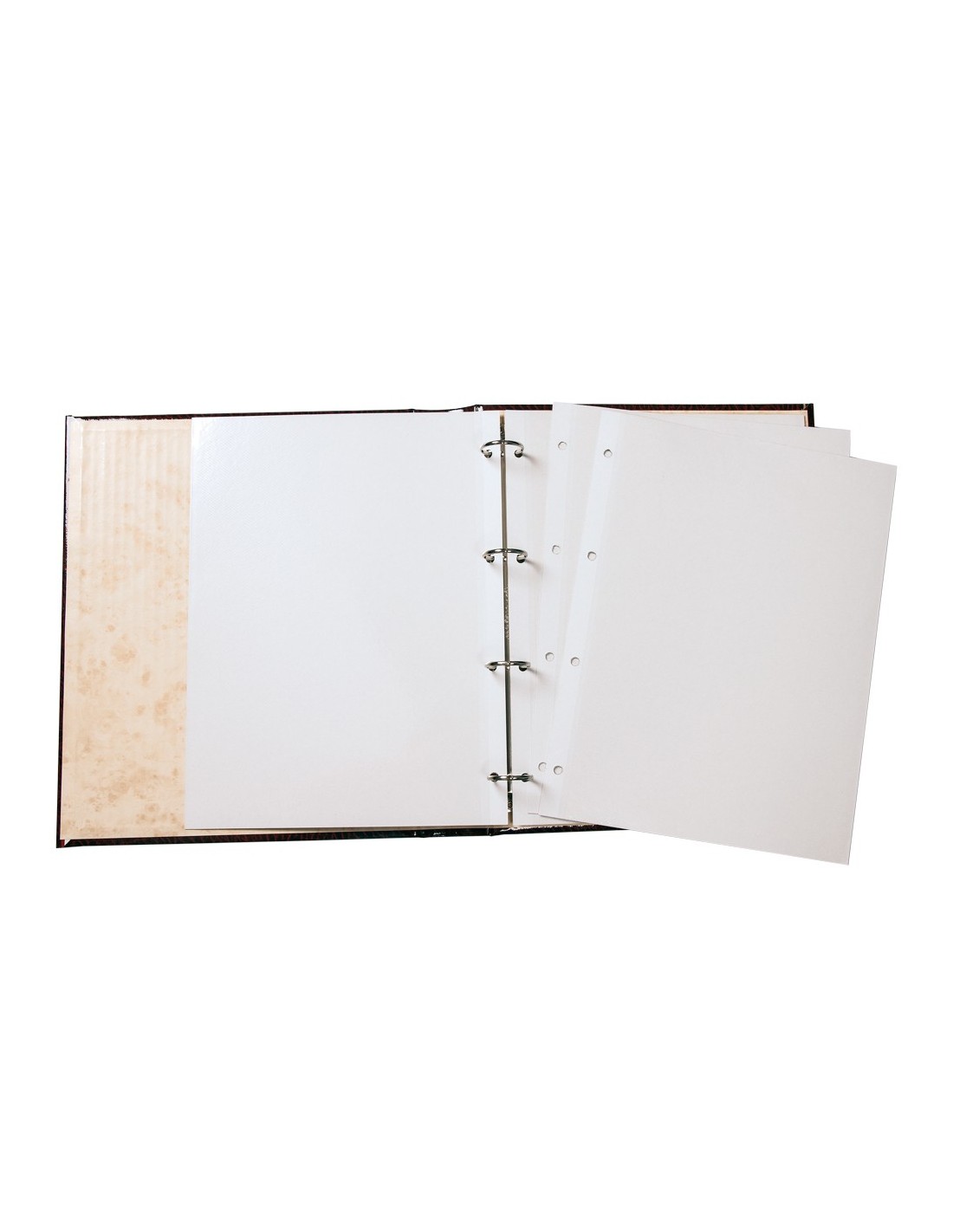 Hojas autoadhesivas para álbum de fotos de 4 anillas. Cartón blanco y lámina protectora de PVC. Formato DIN A4.