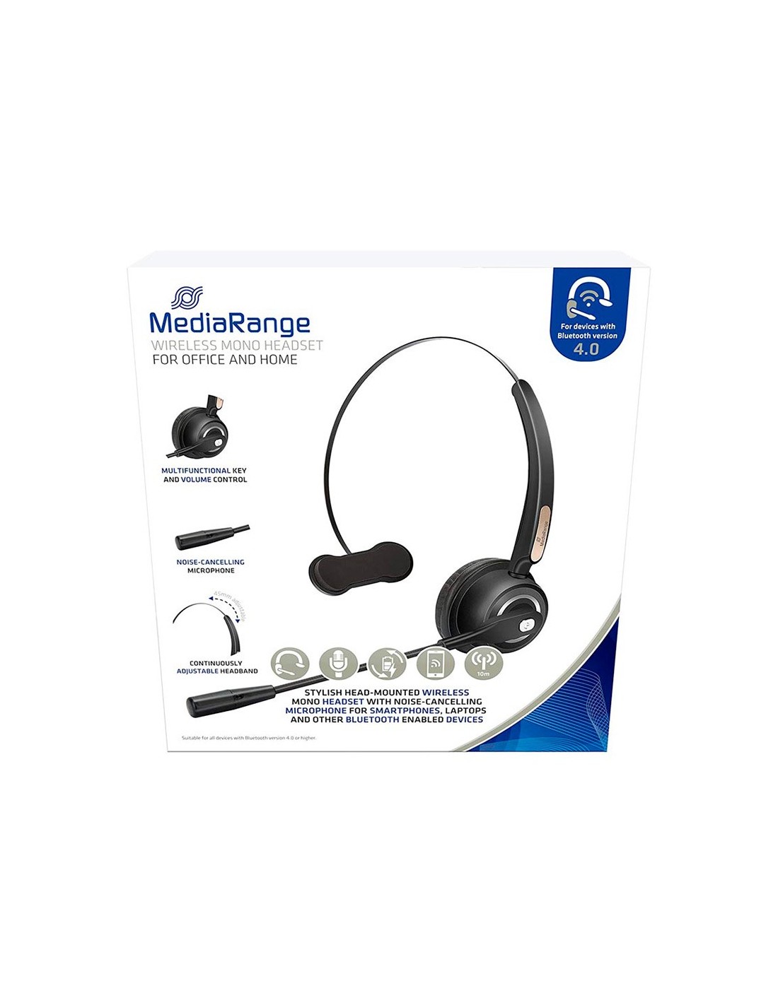 AURICULAR MEDIARANGE MONOAURAL DIADEMA INALAMBRICO BT.MICROFONO