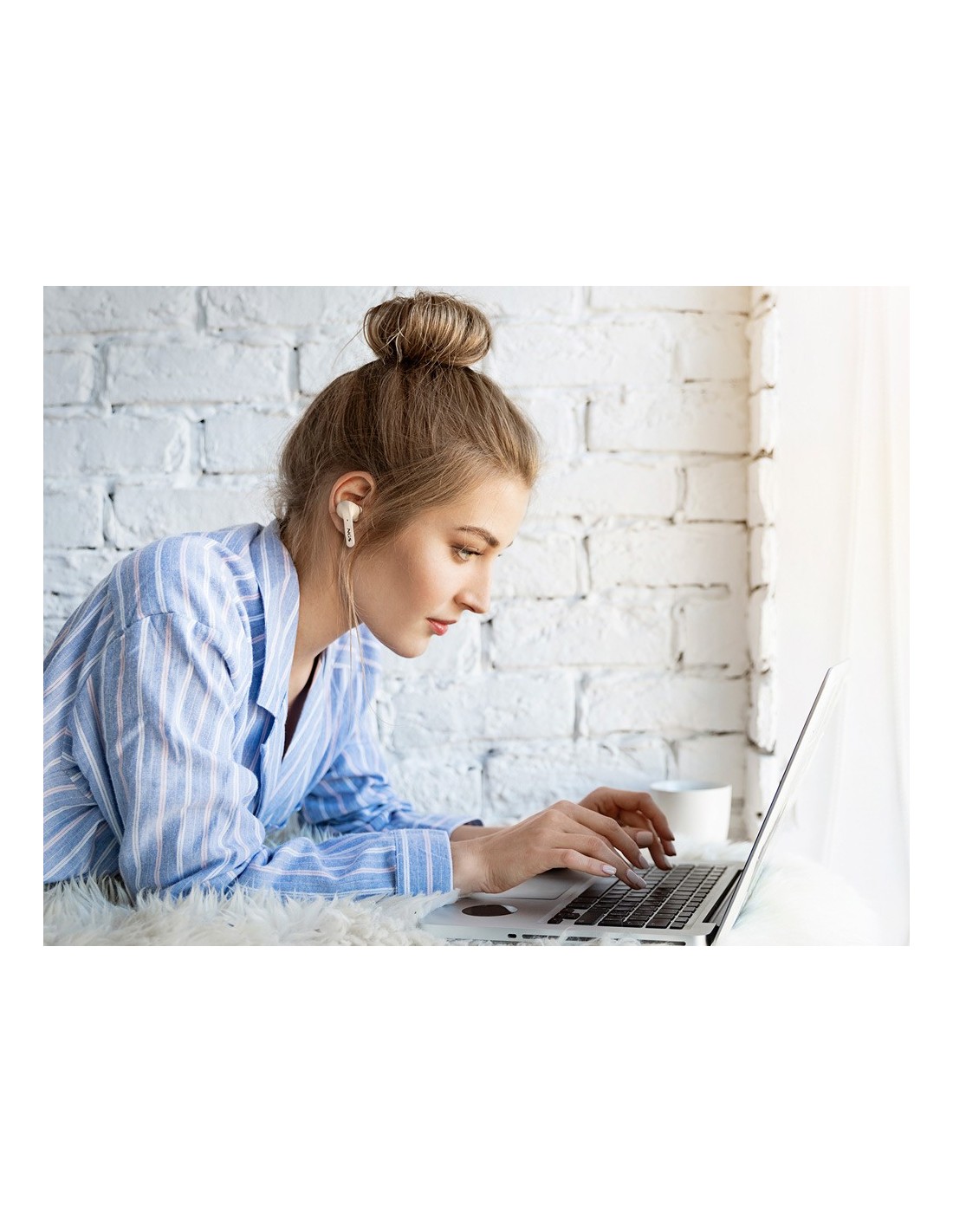Auriculares con tecnología de reducción de ruidos ANC (Active Noise Cancelling). Dispone de 3 modos de escucha: modo normal, modo ANC en el que se reduce el ruido exterior hasta en 25 dBs y modo transparente, en el que se enfatiza el sonido exterior para saber lo que está ocurriendo a tu alrededor. Dispone también de un micrófono de alta calidad, que permite una comunicación más nítida tanto en videoconferencias como en llamadas telefónicas. Incluye controles táctiles con diferentes funciones. Cada auricular incorpora una batería de 40 mAh con una autonomía de hasta 5 horas con una sola carga, y gracias a su base de 350 mAh, podemos cargar cada auricular hasta en 3 ocasiones, disponiendo así de unas 20 horas de uso sin necesidad de cargar la base. Conexión de carga USB tipo C.