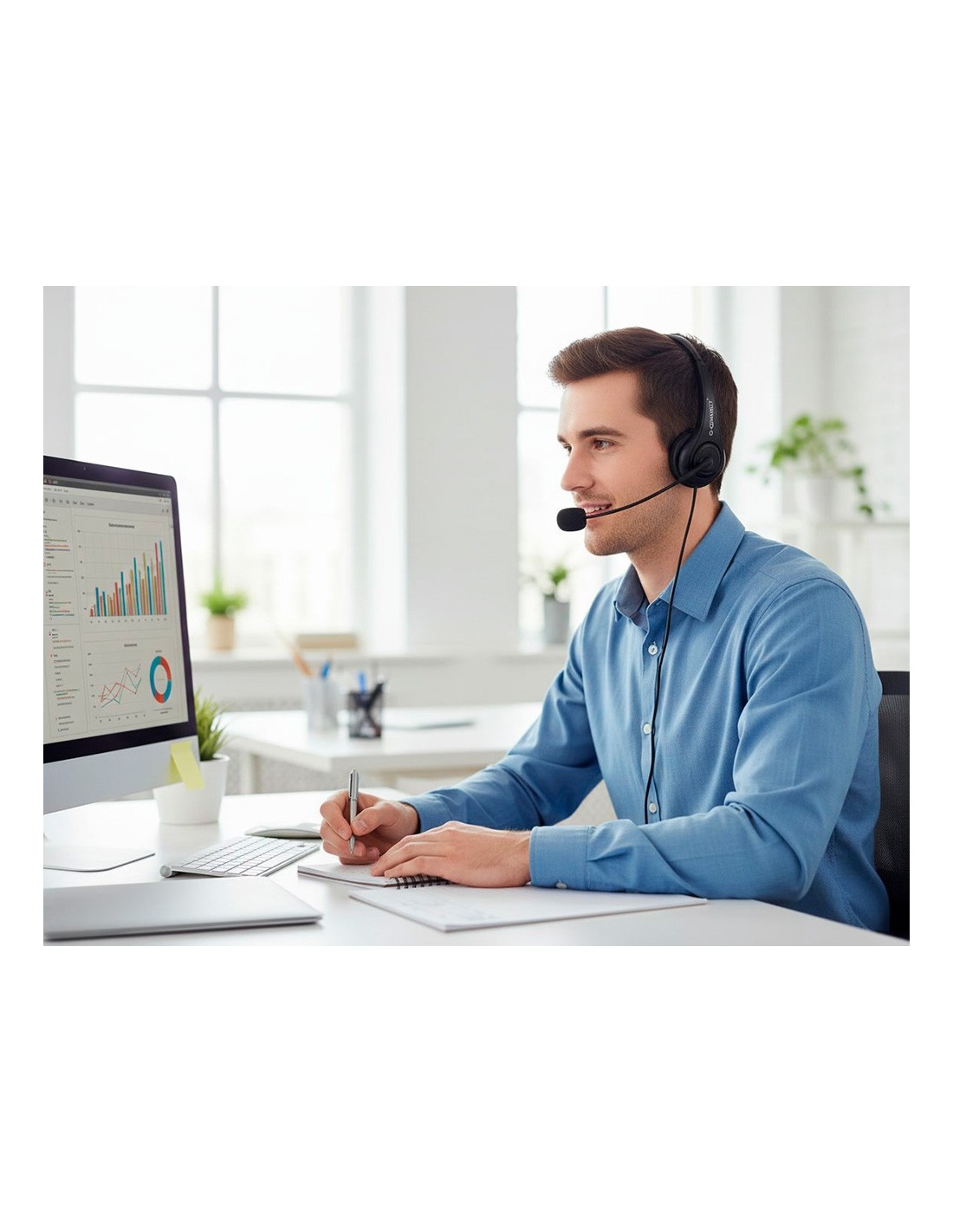Auricular biNaural con micrófono ajustable de alta sensibilidad y sonido ENvolvente. Controlador de volumen, micrófono y audio. Indicado para una comunicación manos libres, ideal para ordenador Y portátil. . Conexión USB. Almohadillas acolchadas para un cómodo uso y diadema ajustable. Color negro. CABLE DE 2M DE LONGITUD.