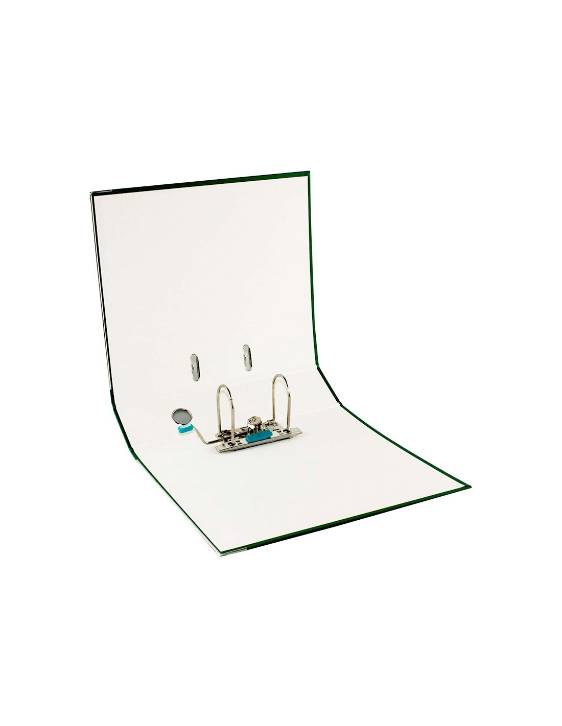 Archivador de palanca fabricado en cartón forrado en PVC en el exterior y papel en el interior. Con cantoneras metálicas, ollao, Rado® y tarjetero en el lomo con etiqueta. Lomo de 80 mm.