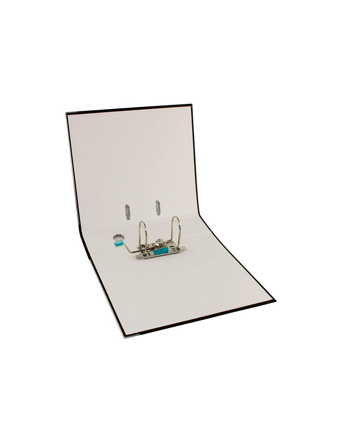 Archivador de palanca fabricado en cartón forrado en PVC en el exterior y papel en el interior. Con cantoneras metálicas, ollao, Rado® y tarjetero en el lomo con etiqueta. Lomo de 80 mm.