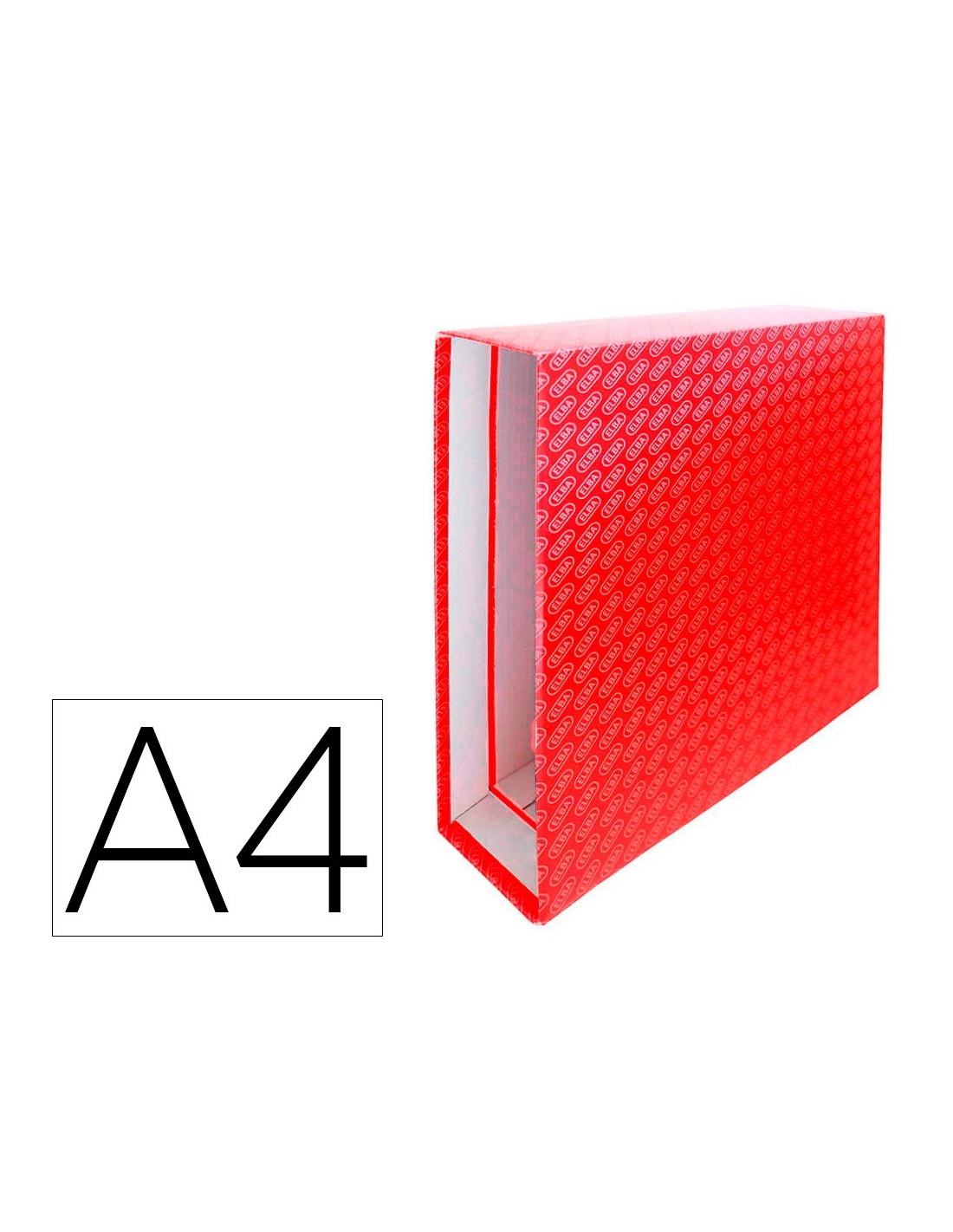 Cajetin Elba compatible con archivadores palanca y carpetas de anillas Elba. En formato A4. Fabricado en doble cartón microcanal plastificado para una mayor resistencia. Se suminitra desmontado. Color rojo con logotipo Elba.