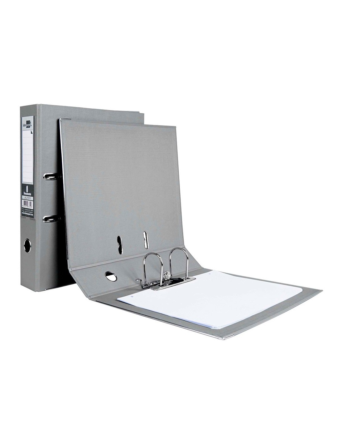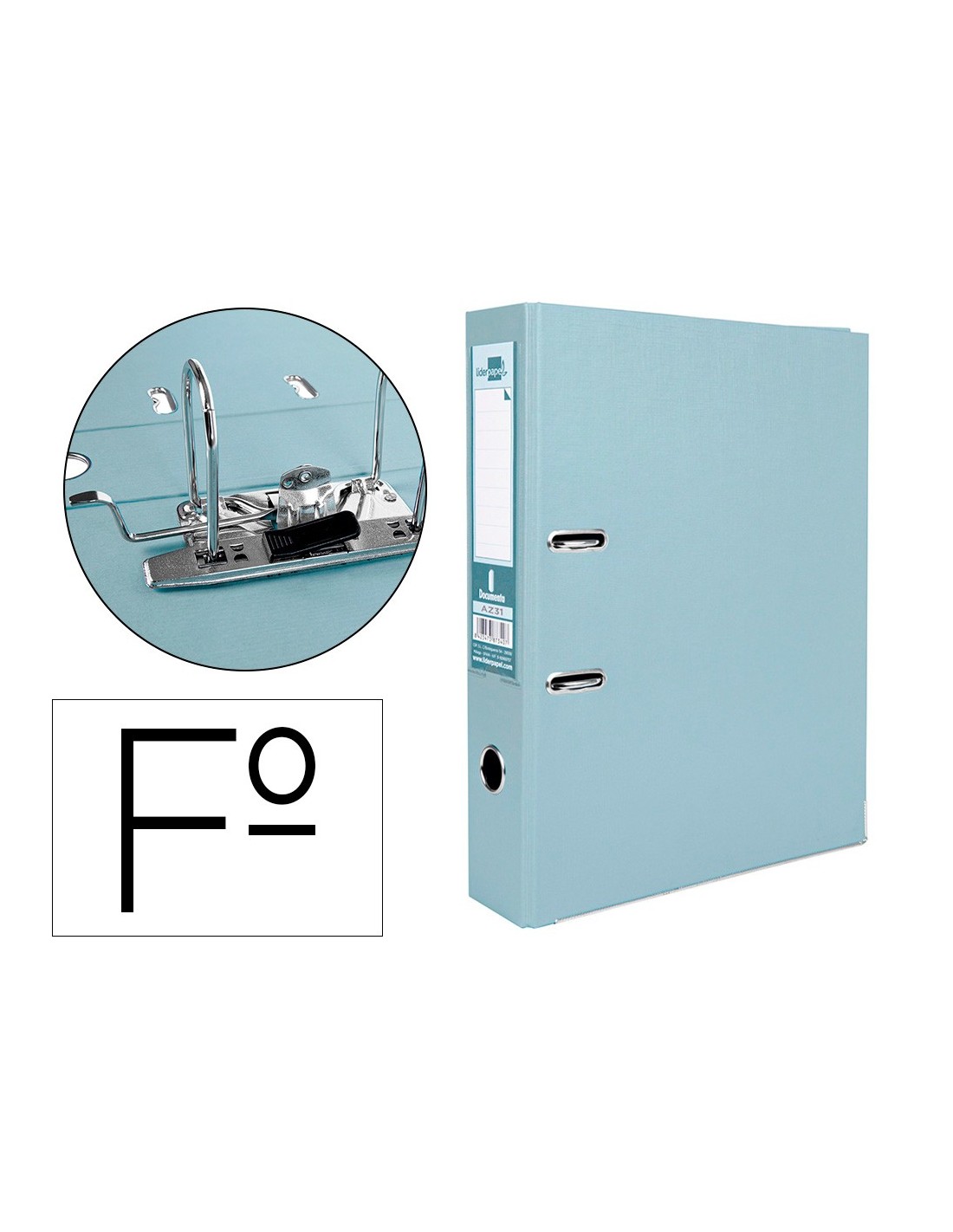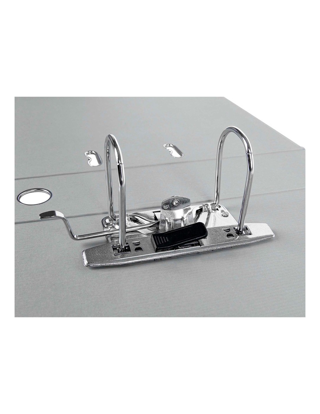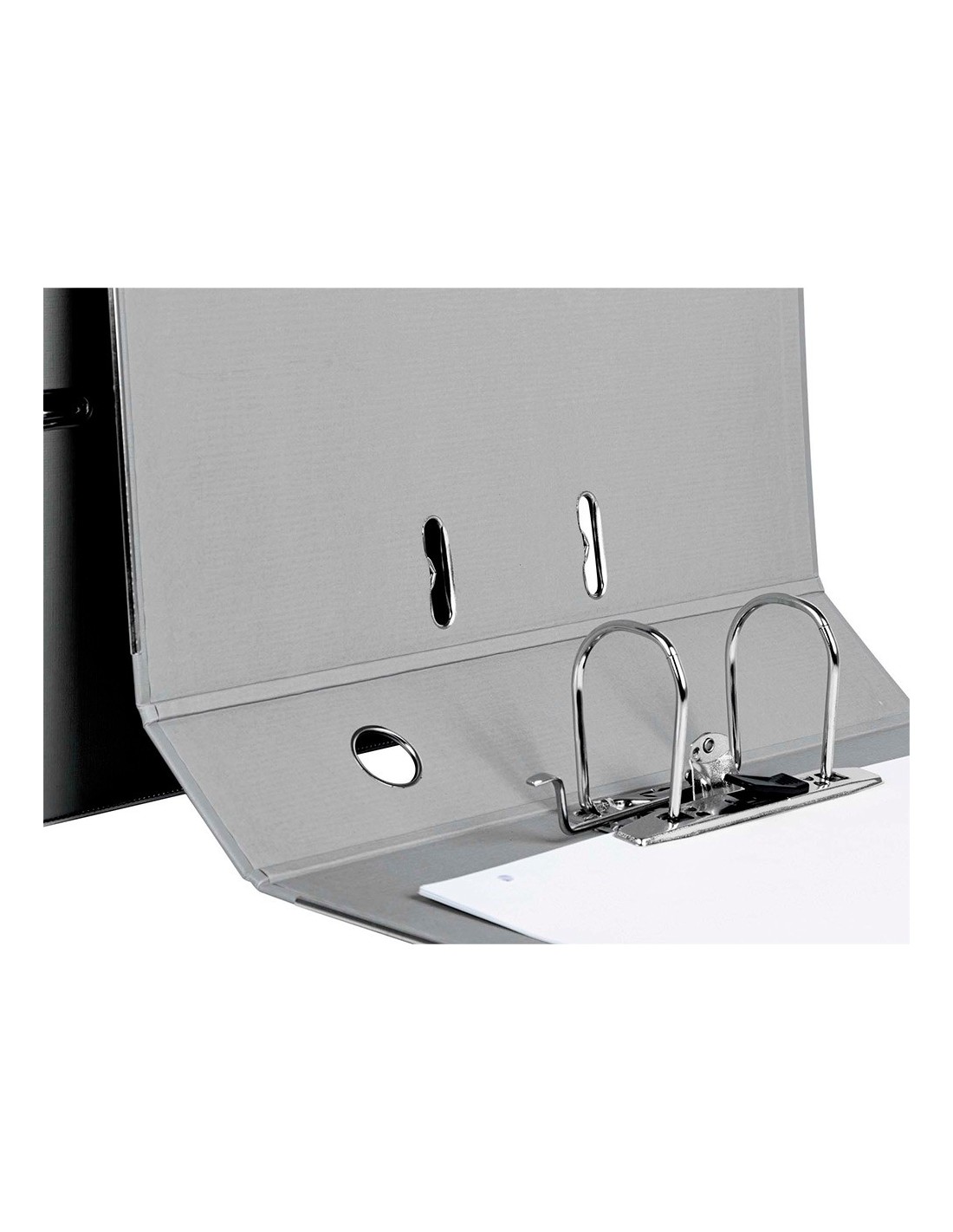 Archivador de cartón entrecolado de 1,9 mm de espesor. Forrado PVC. Con mecanismo de palanca y compresor metálico. Cantoneras largas. Con tarjetero en el lomo. Con Rado® y ollao. Guarda impresa a color.