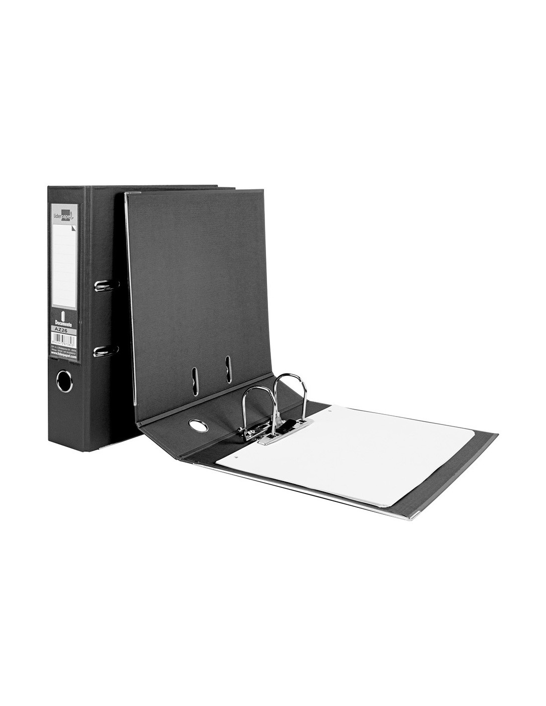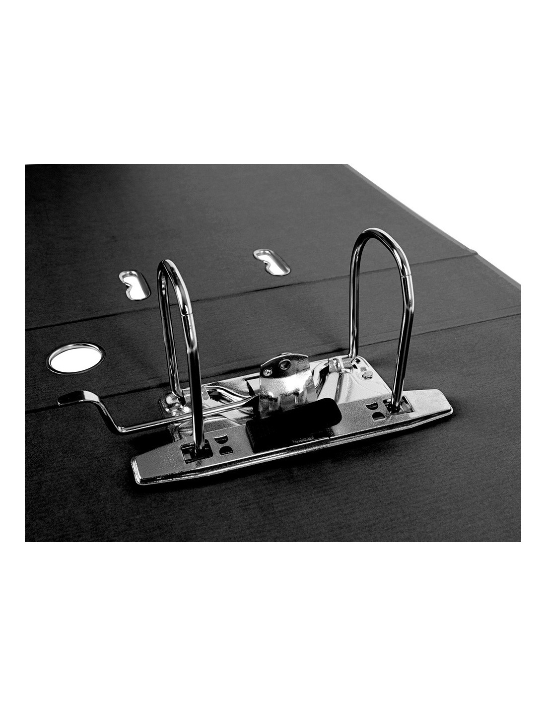 Archivador de cartón entrecolado de 1,9 mm de espesor. Forrado PVC. Con mecanismo de palanca y compresor metálico. Cantoneras largas. Con tarjetero en el lomo. Con Rado® y ollao. Guarda impresa a color.