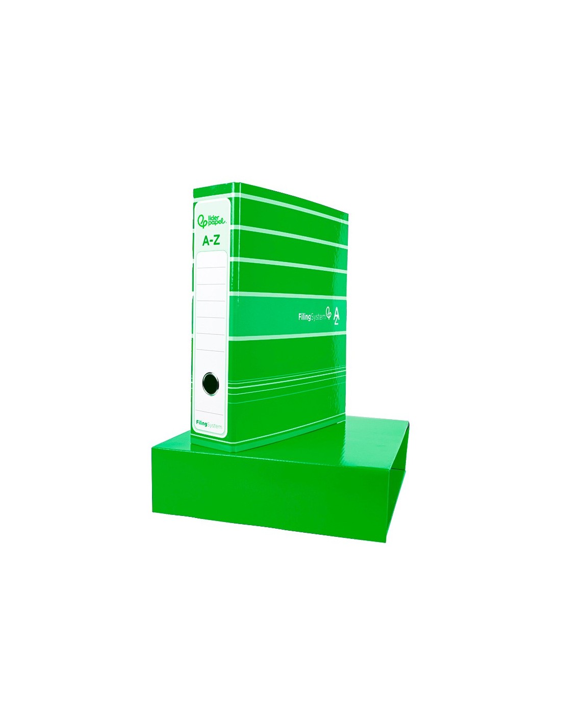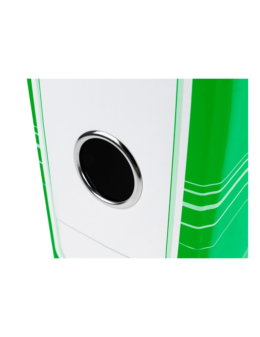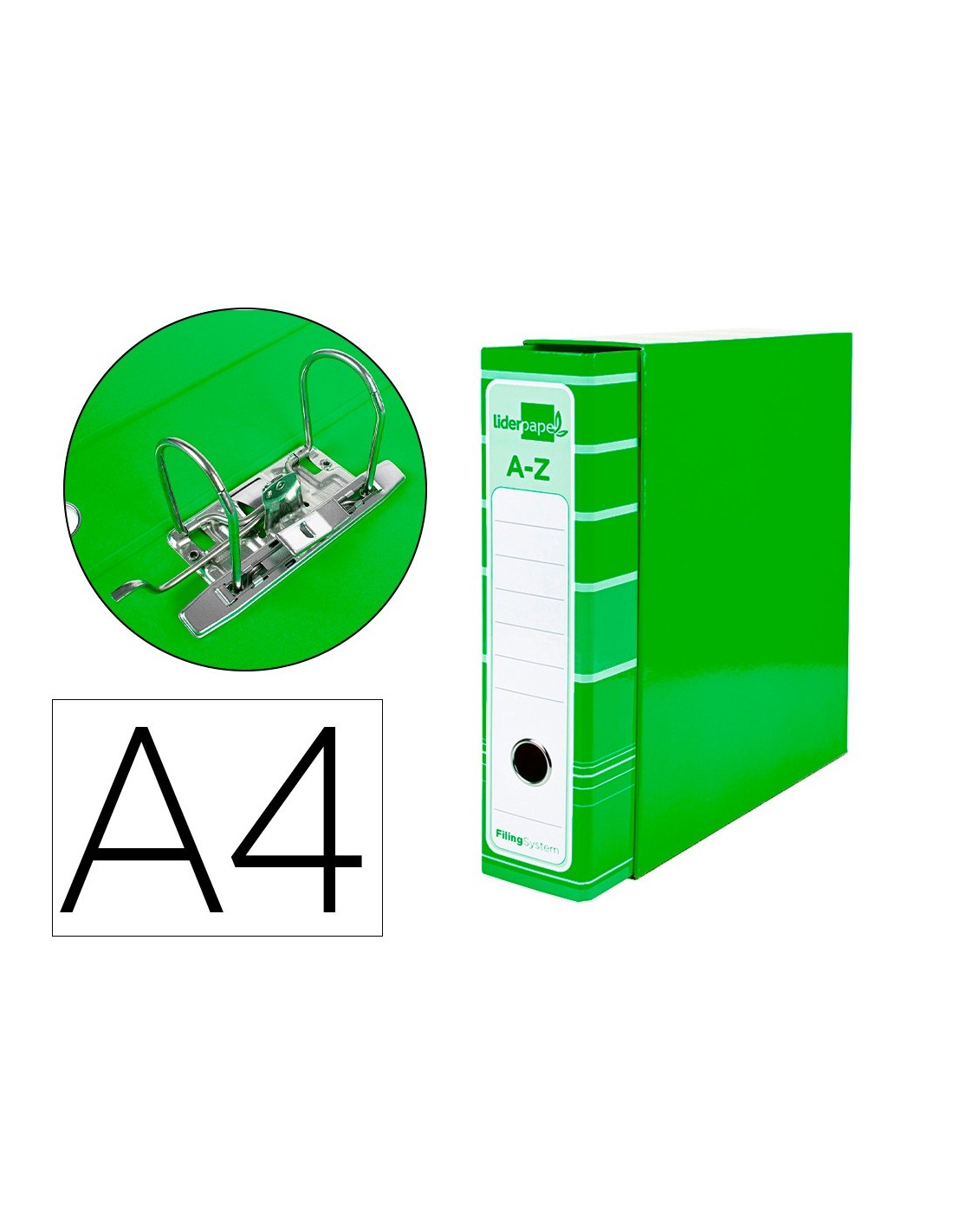 Archivador fabricado en cartón forrado de 1,9 mm de espesor, plastificado con caja. Mecanismo de palanca de 75 mm con ollao y compresor metálico. Ancho de lomo: 80 mm. Formato DIN A4. Medidas: 285 x 318 mm.