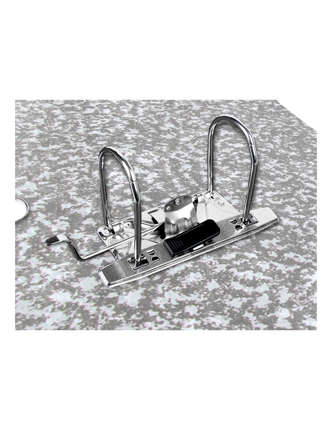 Archivador de cartón entrecolado de 1,9 mm de espesor forrado interior y exterior. Mecanismo de palanca niquelado. Compresor metálico, ollao y cantoneras largas. Lomo ancho. Con Rado®. Sin caja.