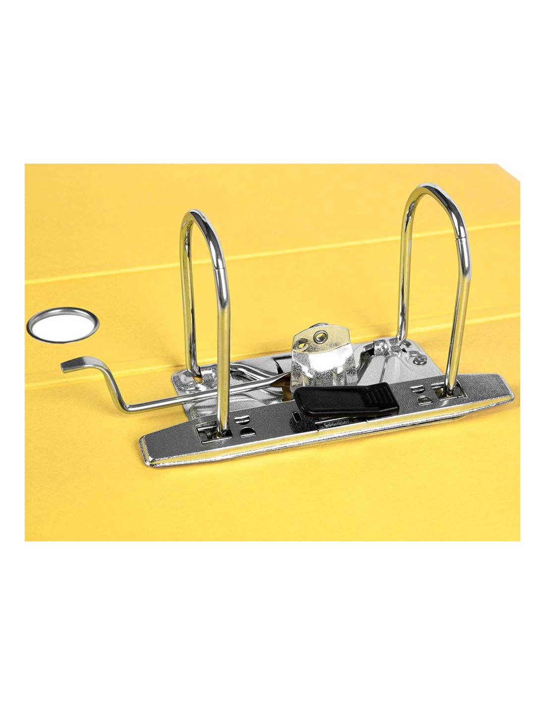 Archivador fabricado en cartón forrado plastificado de 1,9 mm de espesor. Mecanismo de palanca de 75 mm con ollao y compresor metálico. 2 anillas. Ancho de lomo: 80 mm. Formato DIN A4. Medidas: 285 x 318 mm.