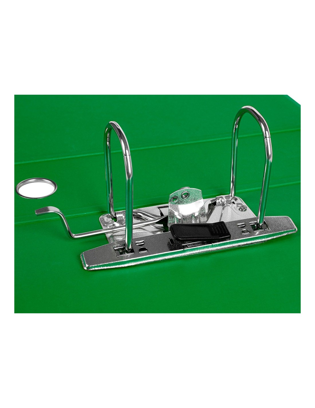 Archivador fabricado en cartón forrado plastificado de 1,9 mm de espesor. Mecanismo de palanca de 75 mm con ollao y compresor metálico. 2 anillas. Ancho de lomo: 80 mm. Formato DIN A4. Medidas: 285 x 318 mm.