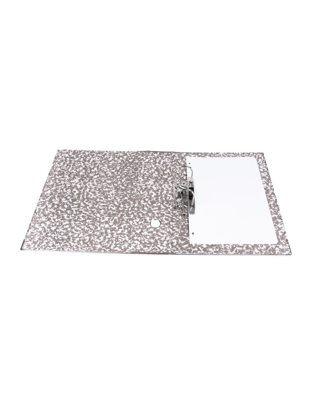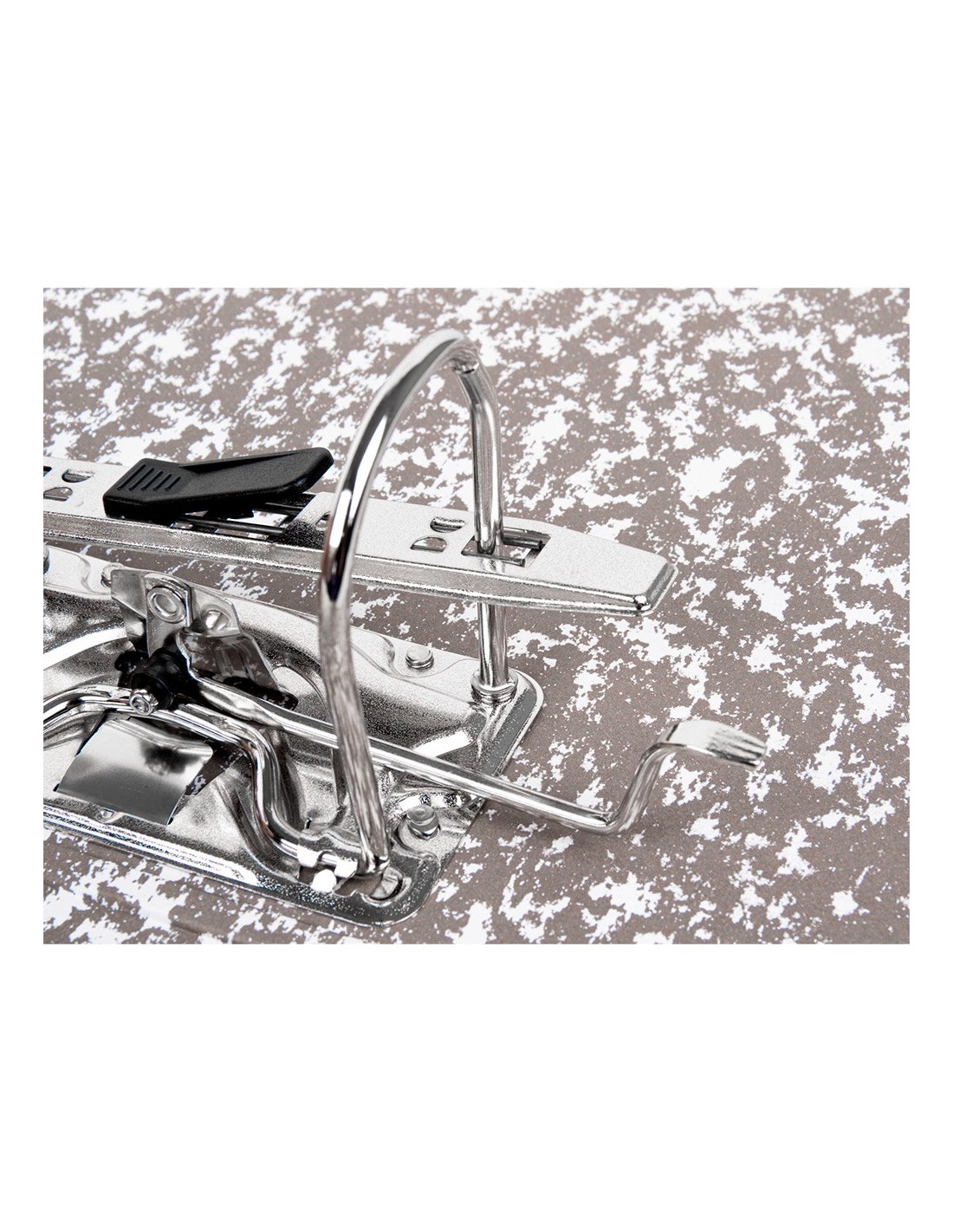 Archivador de cartón entrecolado de 1,9 mm de espesor forrado interior y exterior. Mecanismo de palanca niquelado de 75 mm, compresor metálico, ollao y cantoneras largas. Lomo ancho. Sin índice, con caja. Ancho de lomo: 80 mm. Medidas: 287 x 350 mm.