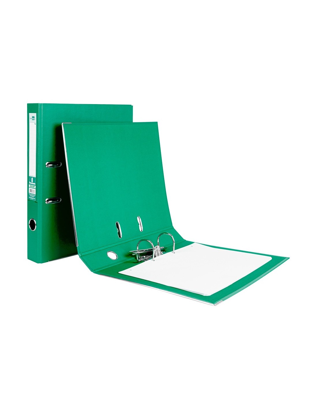 Archivador de cartón entrecolado de 1,9 mm de espesor. Forrado PVC. Con mecanismo de palanca y compresor metálico. Cantoneras largas. Con tarjetero en el lomo. Con Rado® y ollao. Guarda impresa a color.
