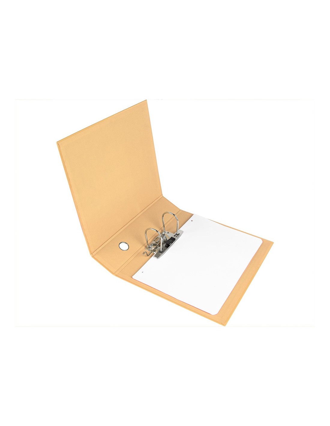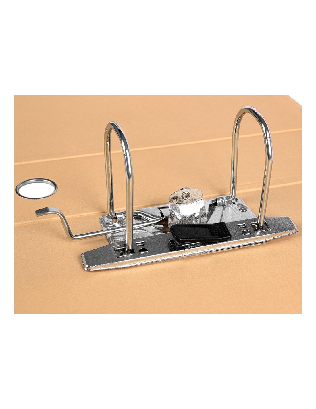 Archivador fabricado en cartón forrado plastificado de 1,9 mm de espesor. Mecanismo de palanca de 75 mm con ollao y compresor metálico. 2 anillas. Ancho de lomo: 80 mm. Formato DIN A4. Medidas: 285 x 318 mm.