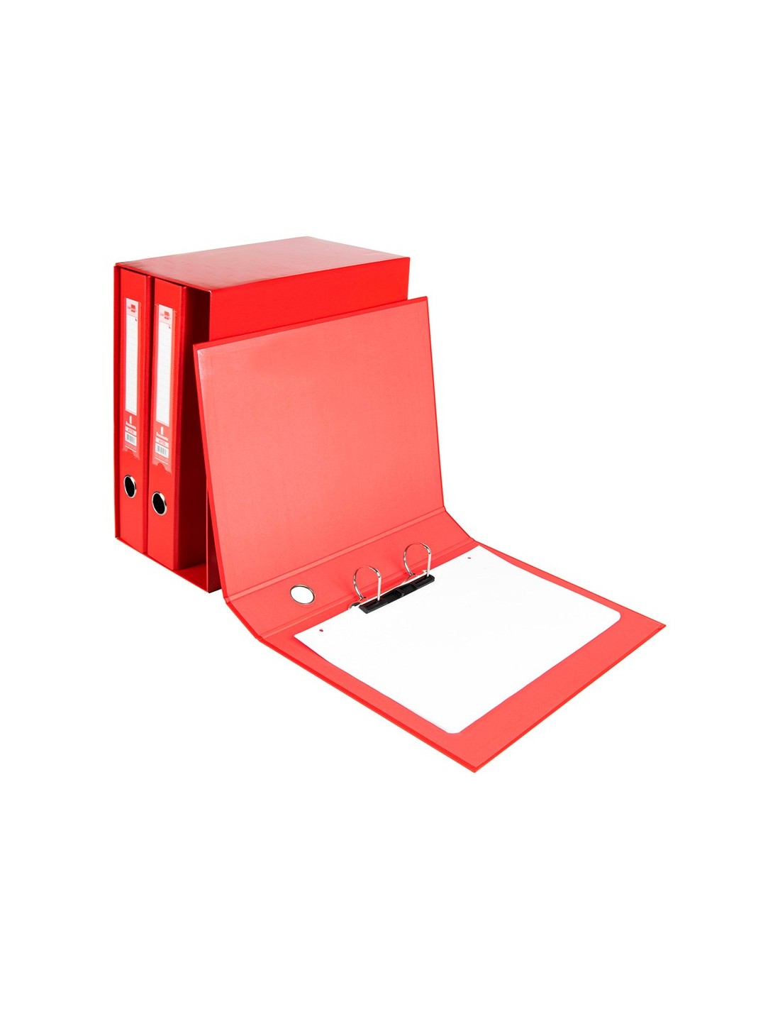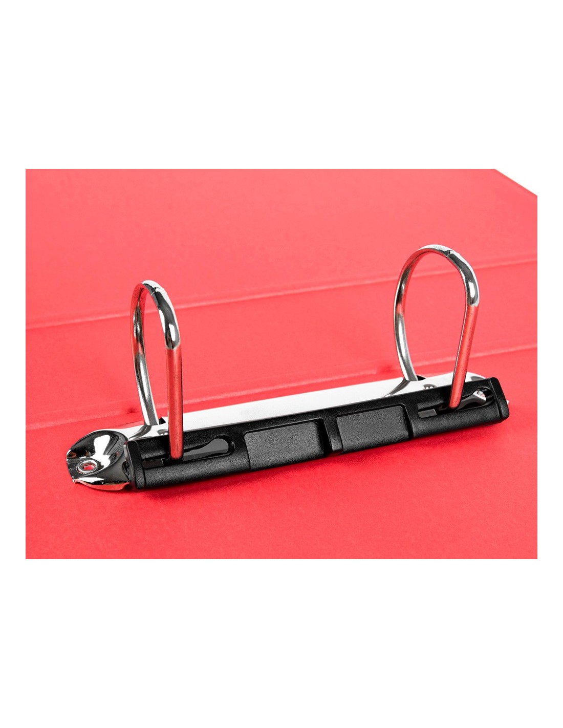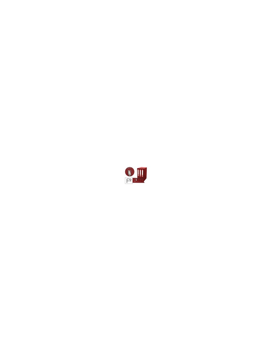 Fabricado en cartón entrecolado de 1,90 mm de espesor forrado con papel de encuadernación plastificado y gofrado con tela de PVC. 2 anillas mixtas de 40 mm con compresor de plástico, cantoneras largas, ollao y tarjetero en el lomo. Tamaño folio. Medidas exteriores del módulo: 184 mm ancho x 350 mm alto x 290 mm fondo. Ancho de lomo: 60 mm.