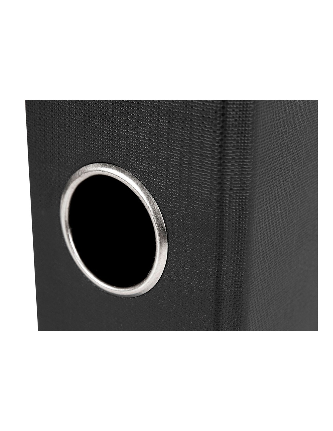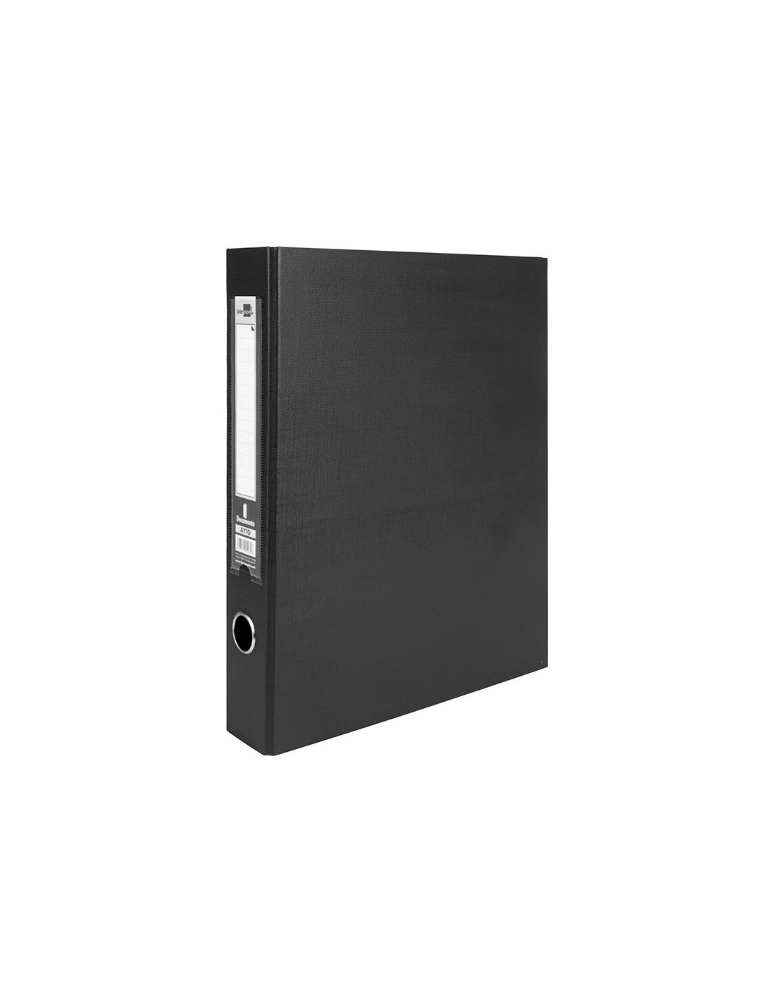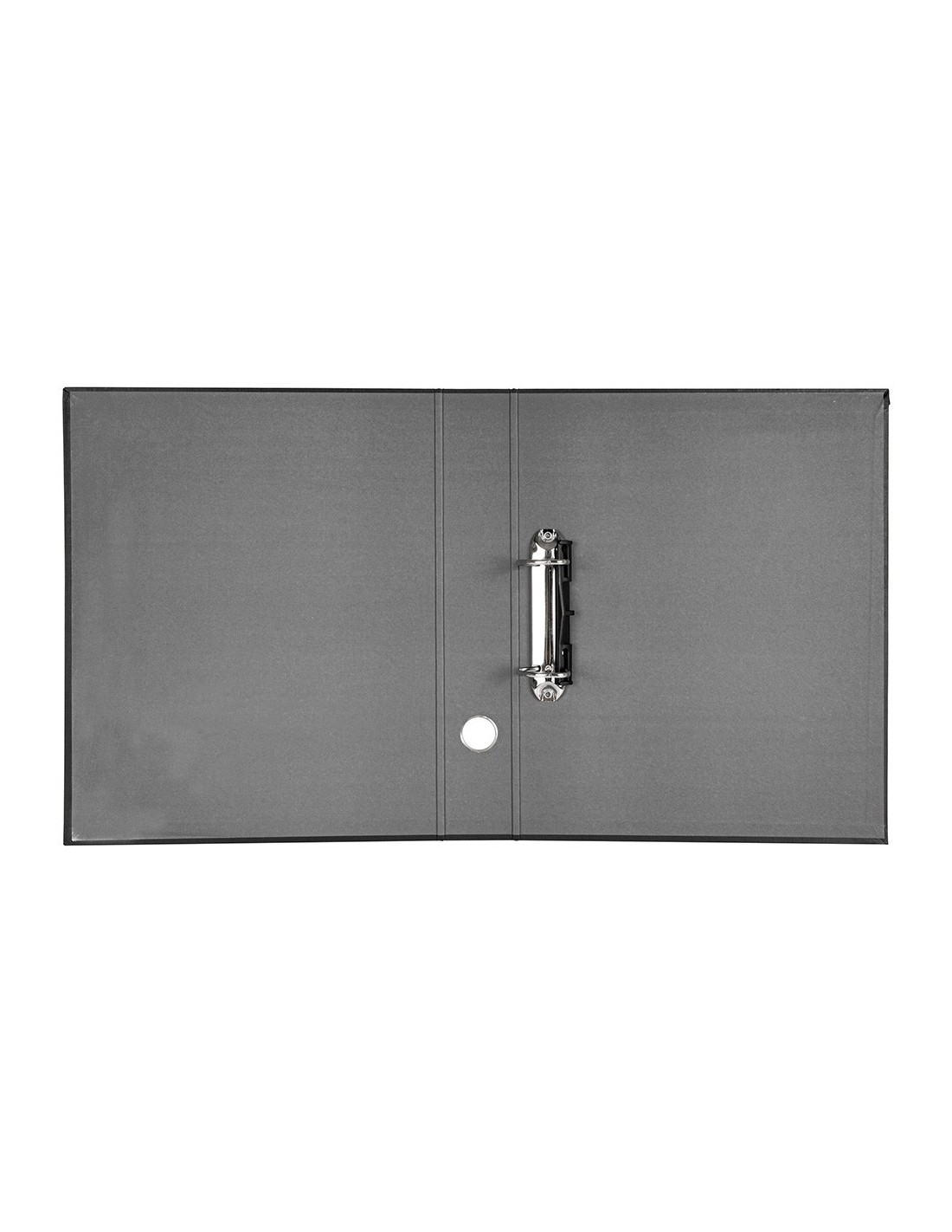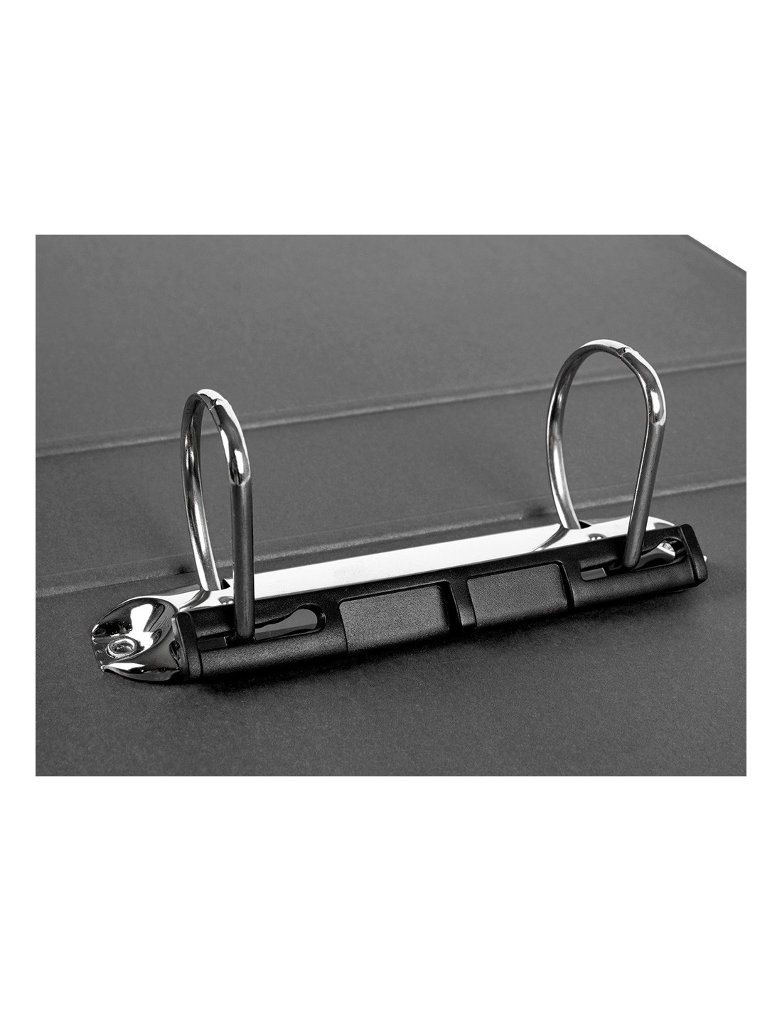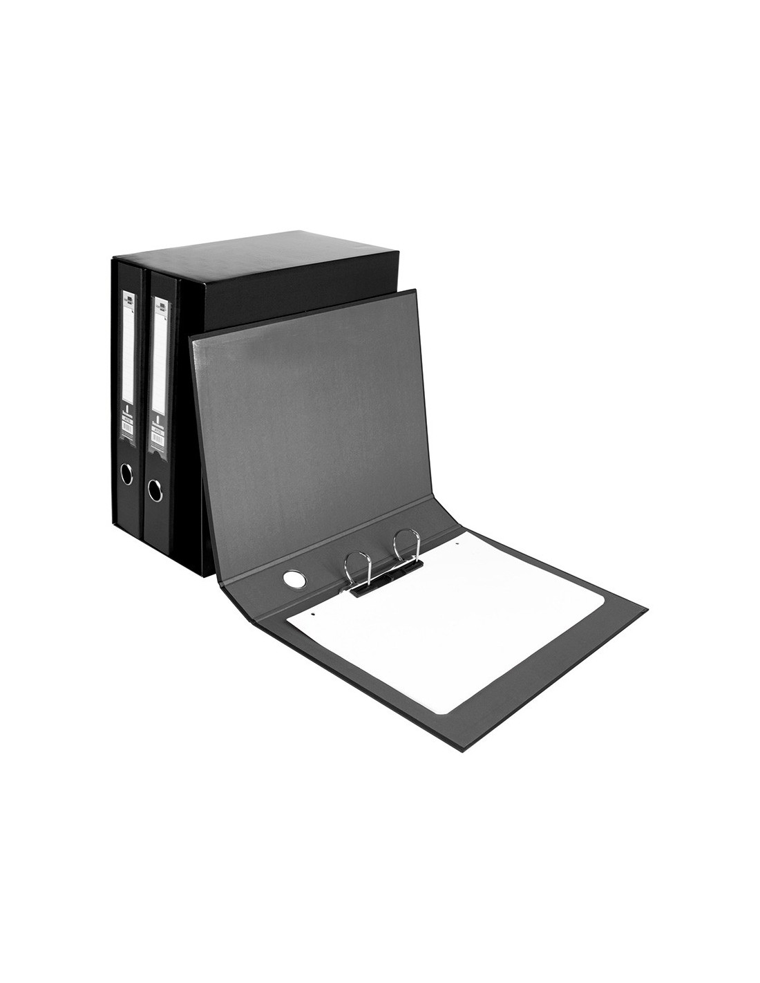 Fabricado en cartón entrecolado de 1,90 mm de espesor forrado con papel de encuadernación plastificado y gofrado con tela de PVC. 2 anillas mixtas de 40 mm con compresor de plástico, cantoneras largas, ollao y tarjetero en el lomo. Tamaño folio. Medidas exteriores del módulo: 184 mm ancho x 350 mm alto x 290 mm fondo. Ancho de lomo: 60 mm.
