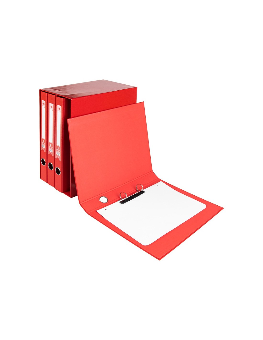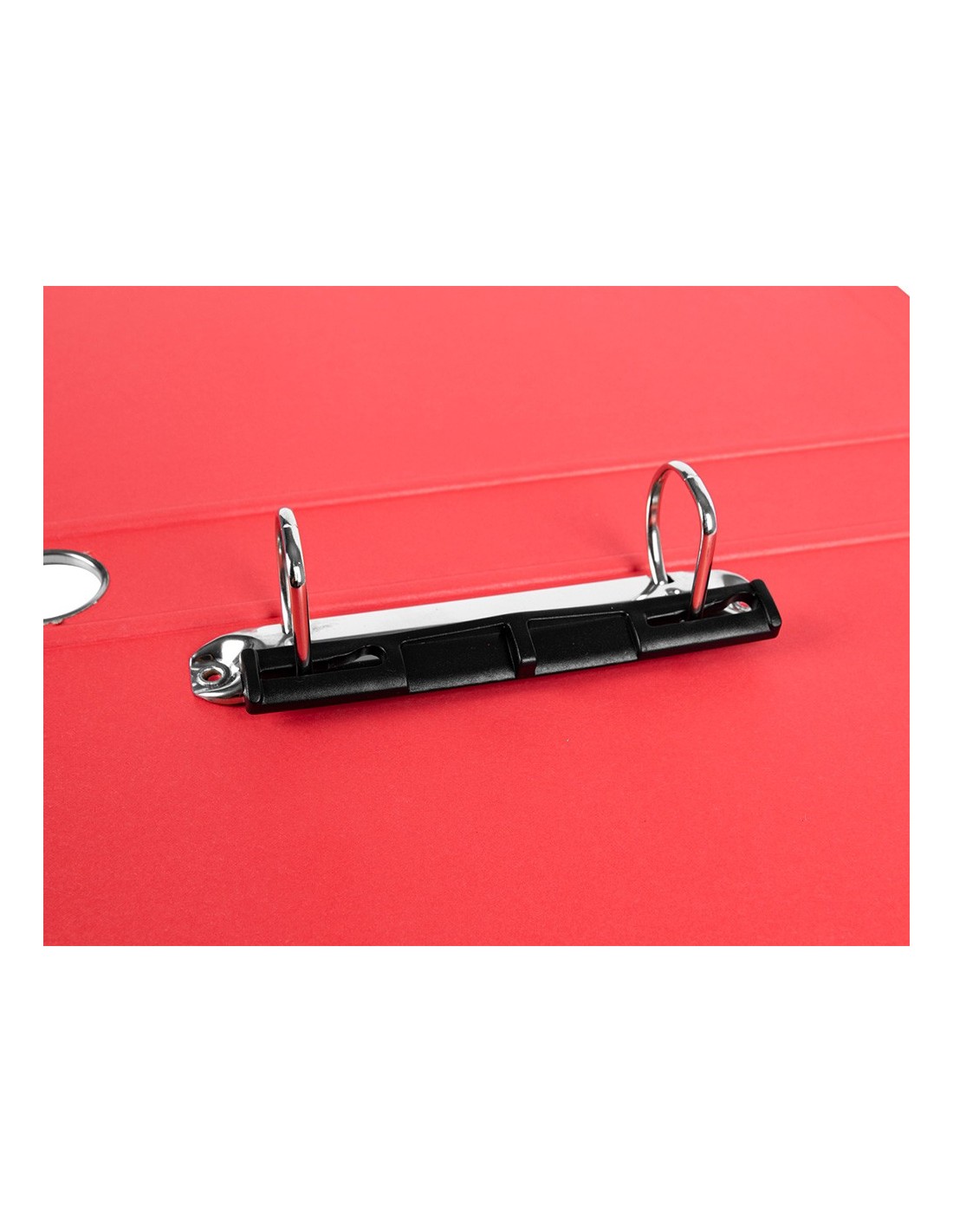 Fabricado en cartón entrecolado de 1,90 mm de espesor forrado con papel de encuadernación plastificado y gofrado con tela de PVC. 2 anillas mixtas de 25 mm con compresor de plástico, cantoneras largas, ollao y tarjetero en el lomo. Tamaño folio. Medidas exteriores del módulo: 184 mm ancho x 350 mm alto x 290 mm fondo. Ancho de lomo: 40 mm.