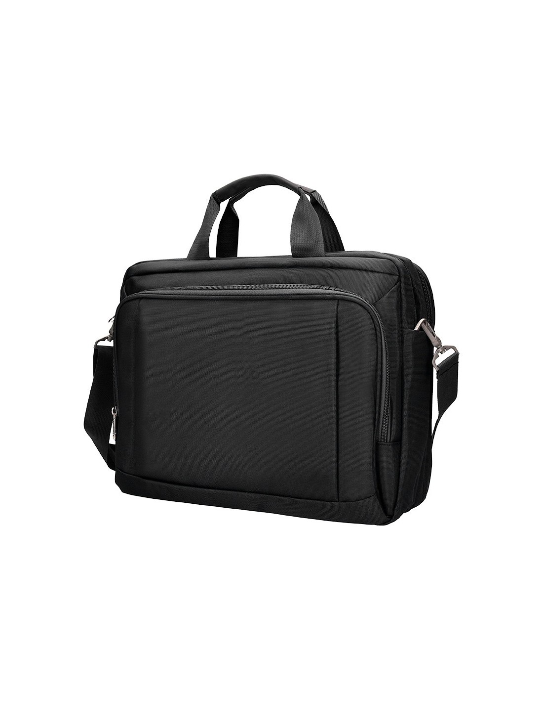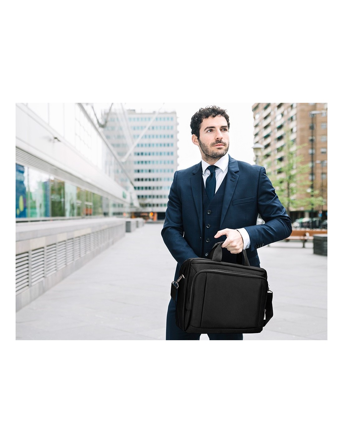 Maletín para portátil, práctico y ligero fabricado en poliéster. Tiene un bolsillo exterior con compartimento para bolígrafos y tres compartimentos interiores. Uno de los compartimentos interiores está acolchado con un cierre de velcro para el portátil. 1 asa de mano. Medidas: 390 x 310 x 120 mm.