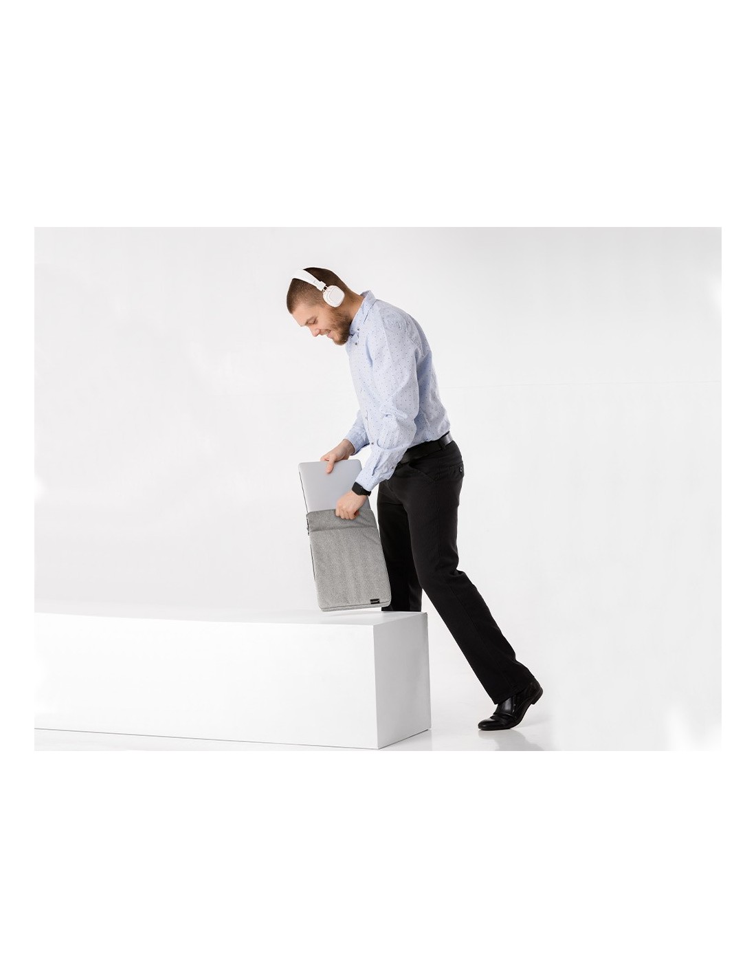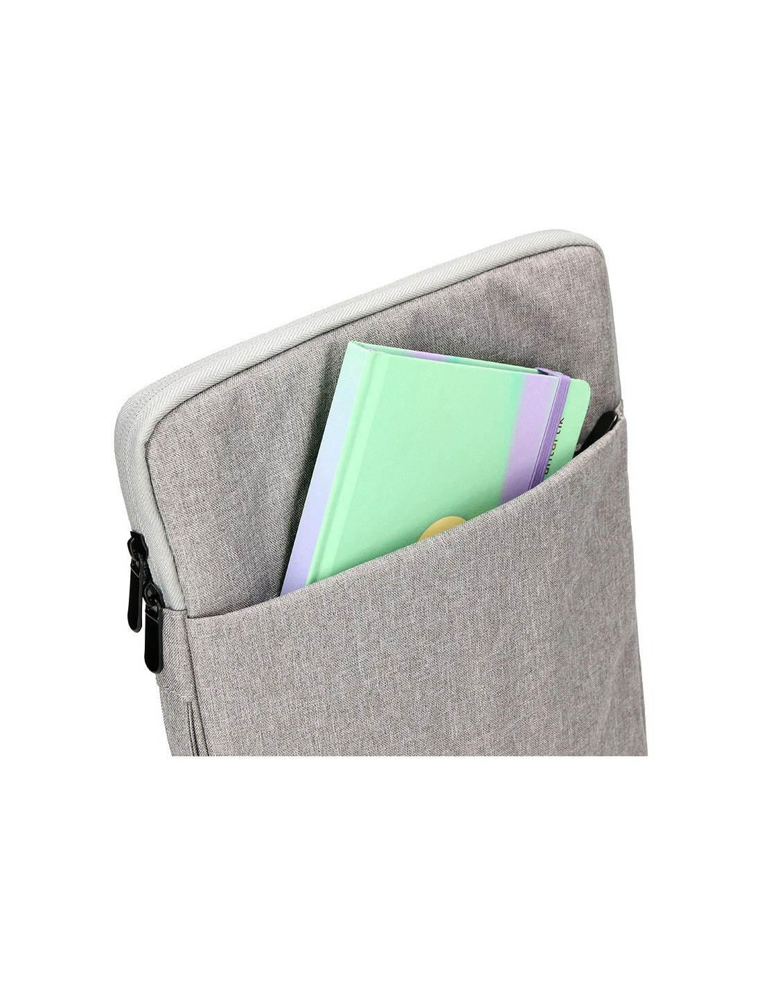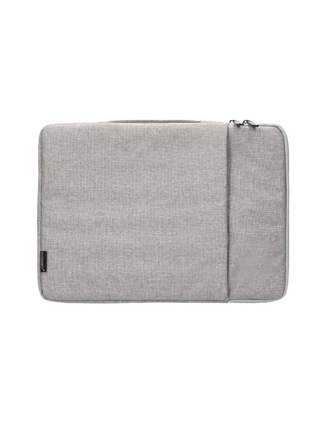 Funda para portátil de 13,3'' en poliéster y forro interior tacto terciopelo. Con asa y compartimento exterior con cierre cremallera para guardar un cargador o pequeños artículos. Color gris claro. Medidas: 350 x 250 x 25 mm.