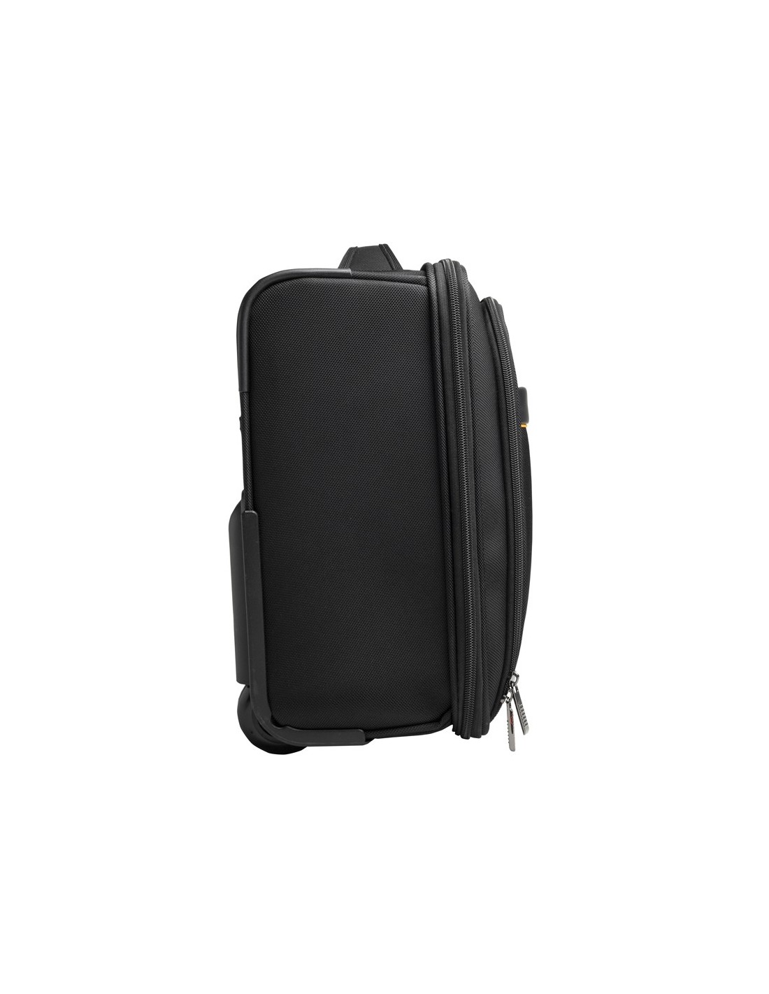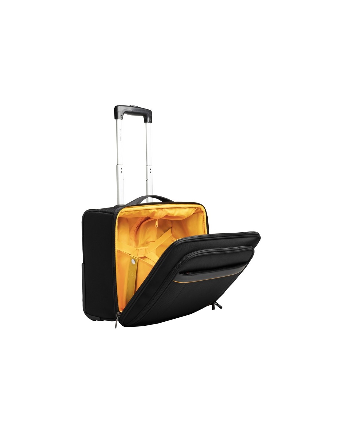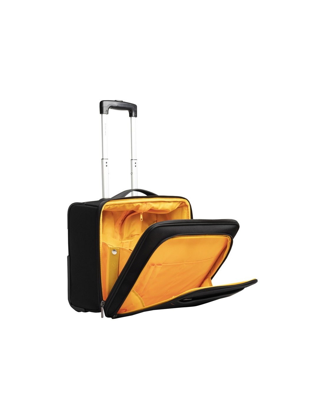Trolley Exatrolley slim con dos ruedas y con asa telescópica. Tiene un compartimiento principal con un bolsillo acolchado separado para dispositivoshasta 15,6\", así como correas cruzadas para guardar ropa o documentos. Un a cinta en su parte trasera permite apilarlo sobre una maleta. Tejido exterior y forro en poliéster 100% reciclado (RPET) procedente del reciclaje de 20 botellas de plásticos. Capacidad de 17 litros. Certificado GRS. 2 años de garantía.