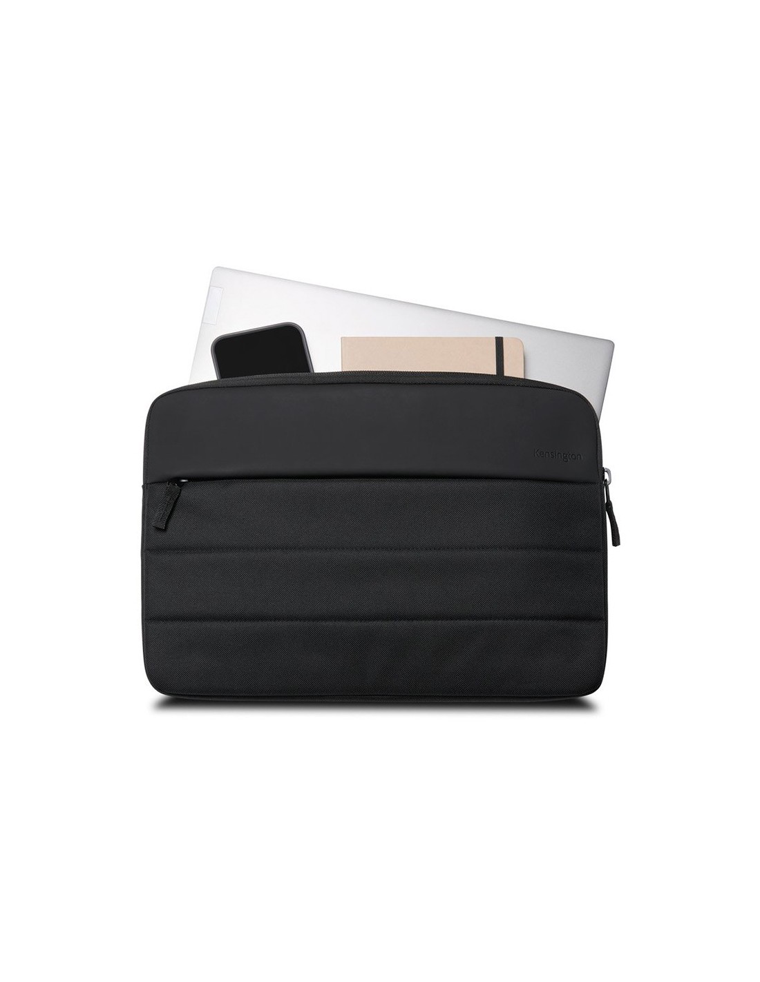 Funda para portátil de hasta 14\". Fabricado en material reciclado. Diseño sencillo y moderno. Compartimento acolchado para proteger el portátil o latableta. Bolsillo frontal con cremallera para acceder rápidamente a lo es encial.