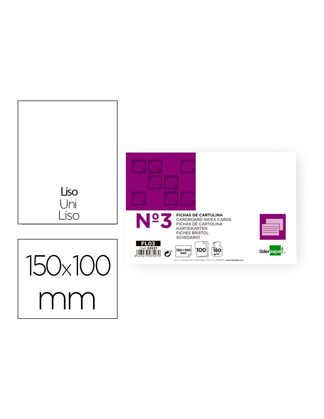 Fichas rayadas y lisas. Cartulina de 180 g/m². Ideal para fichas bibliográficas. Paquetes de 100 hojas.