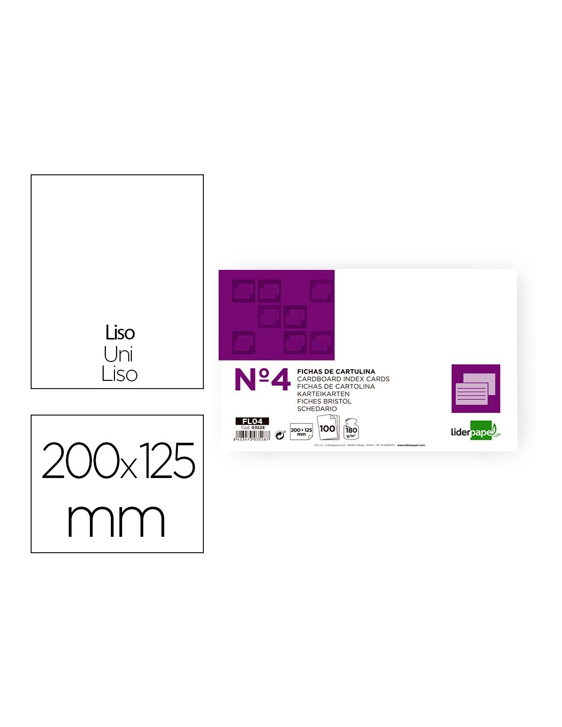 Fichas rayadas y lisas. Cartulina de 180 g/m². Ideal para fichas bibliográficas. Paquetes de 100 hojas.