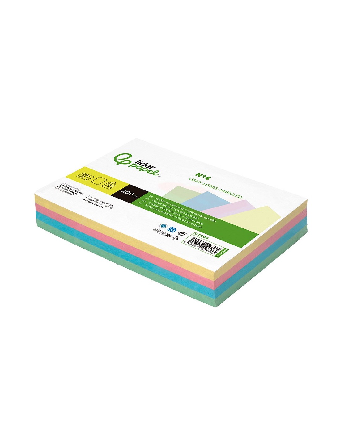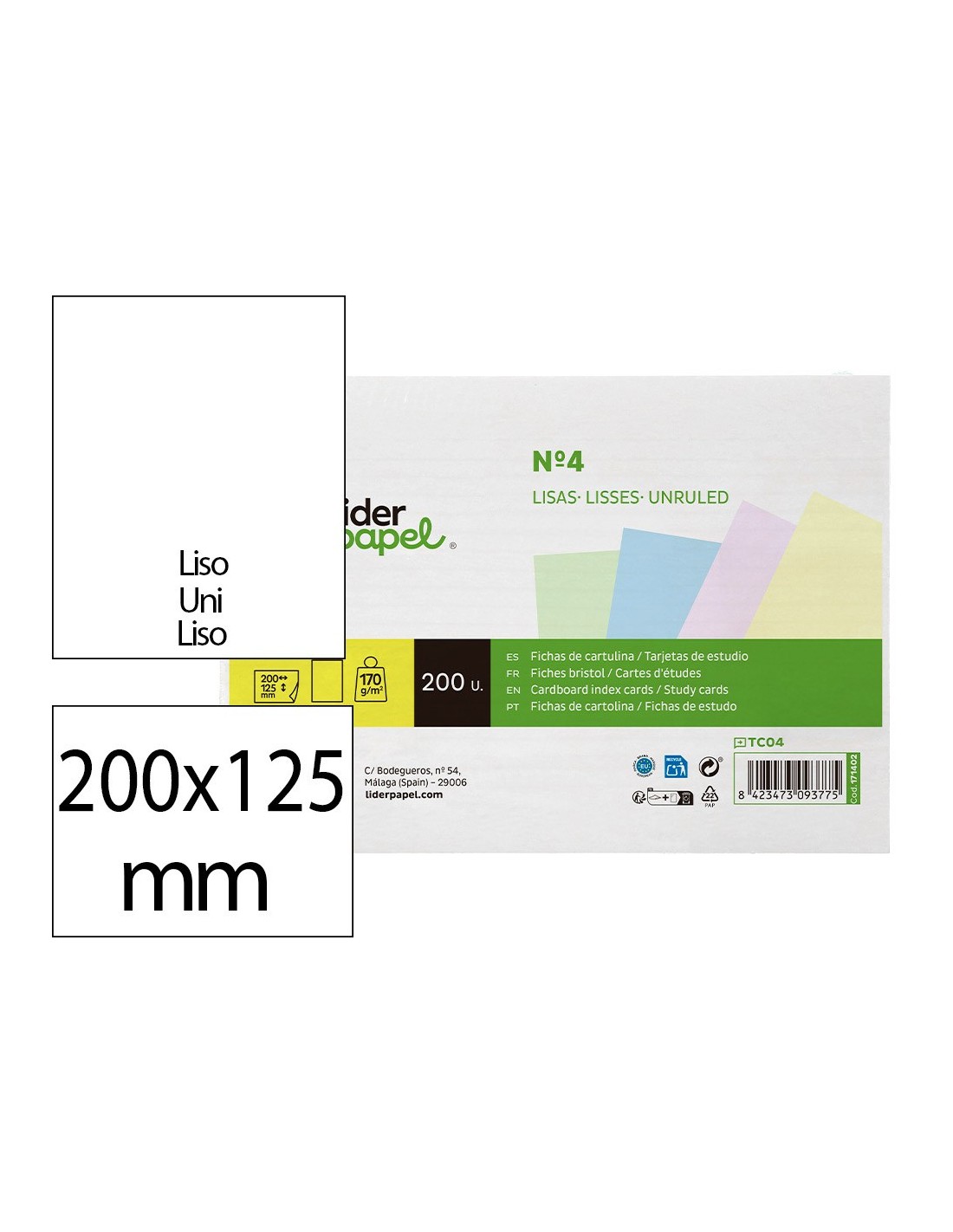 TARJETA ESTUDIAR LISA CARTULINA 170 GR/M2 125X200MM PQ.DE 200 UD.
