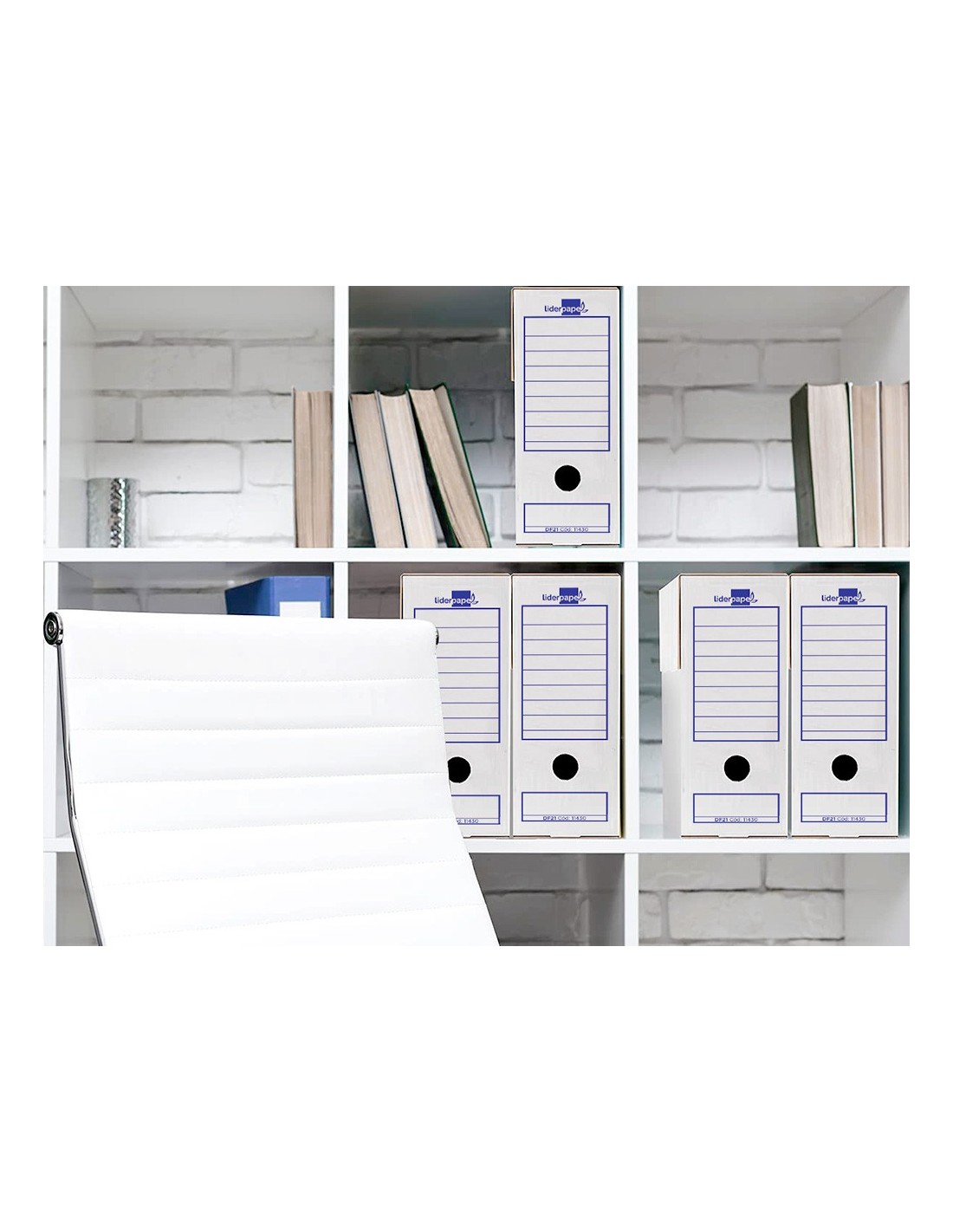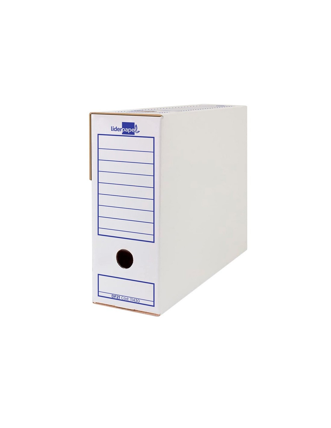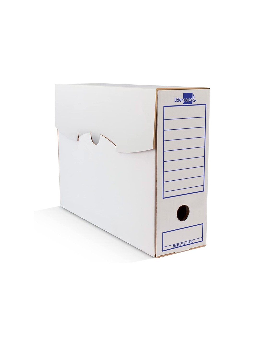 Caja de archivo definitivo ultrarresistente para almacenar, organizar y proteger documentos y facturas tamaño folio prolongado. Con sistema de montaje manual muy simple. Fabricada con cartón ondulado 100% reciclado y reciclable de 400g/m² para una mayor resistencia. Esta caja de archivo definitivo en color blanco tiene un lomo de 116 mm y sus medidas son 388x116x275 mm. Con ollao lateral y frontal acompañado de 2 zonas amplías de etiquetaje que permiten almacenarlas tanto en posición vertical como horizontal. Esta caja de archivo definitivo te permitirá conservar tus documentos de forma ordenada al mismo tiempo que ahorrarás espacio, siendo así mucho más eficiente su almacenamiento. Compatible con los cajones contendores Liderpapel 171283 y 171289.