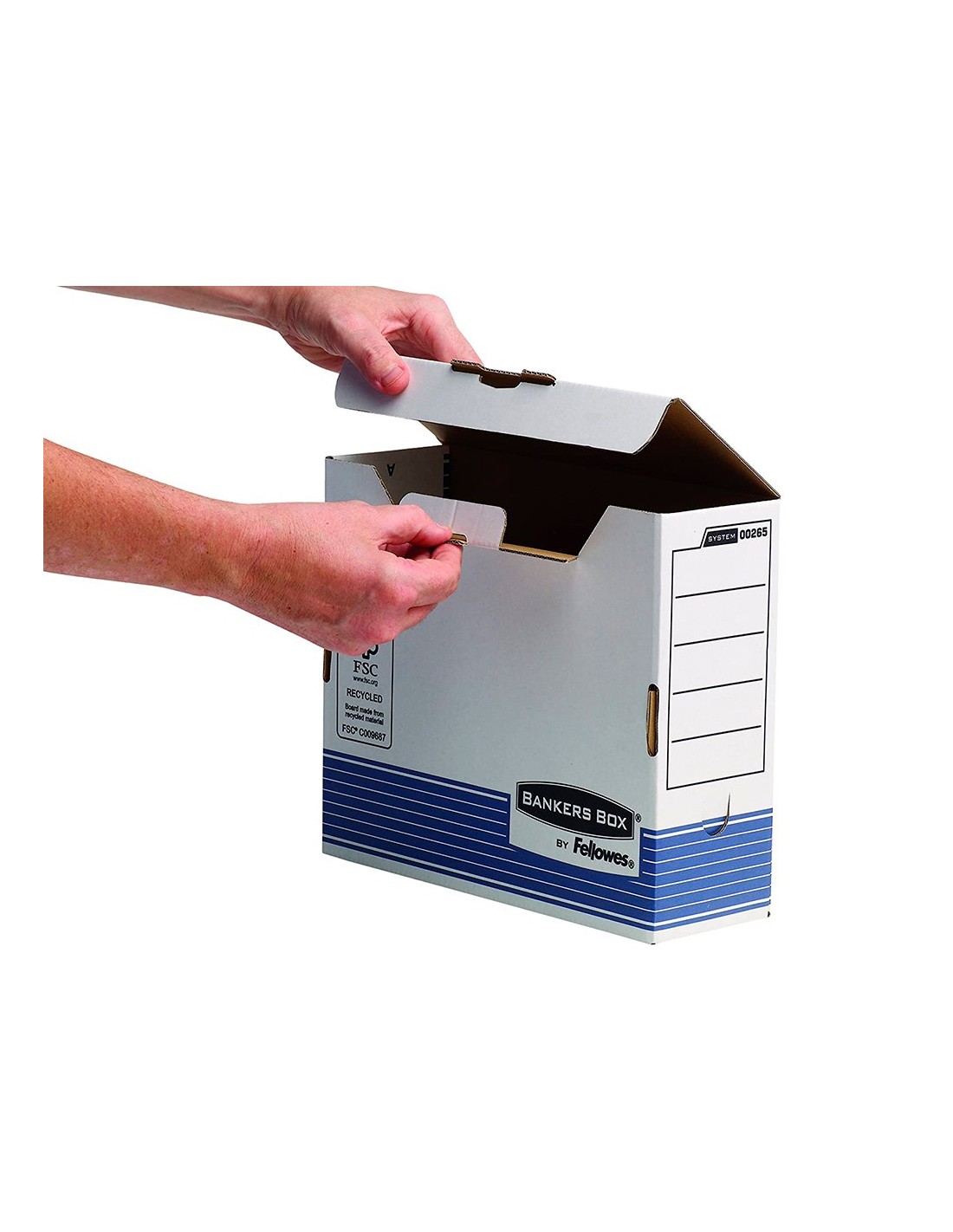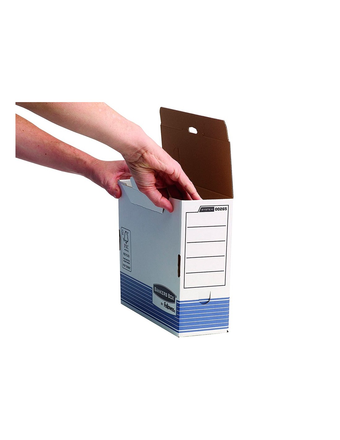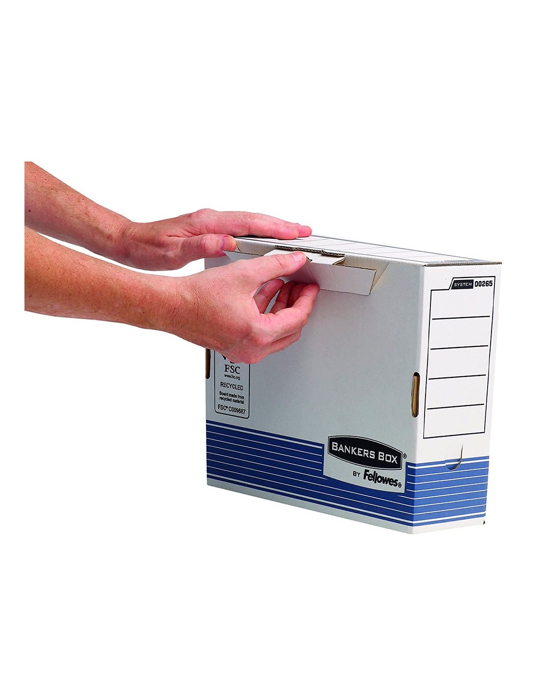 Archivo definitivo fabricado en cartón 100% reciclado con certificación FSC y 100% reciclable Sistema patentado de Montaje Automático Fastfold, 10 veces más rapido que el montaje manual. Cierre con lengüeta para mayor seguridad.