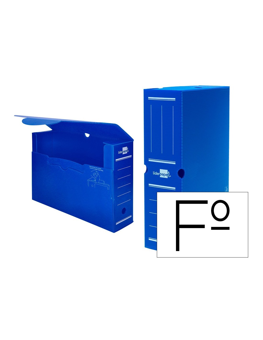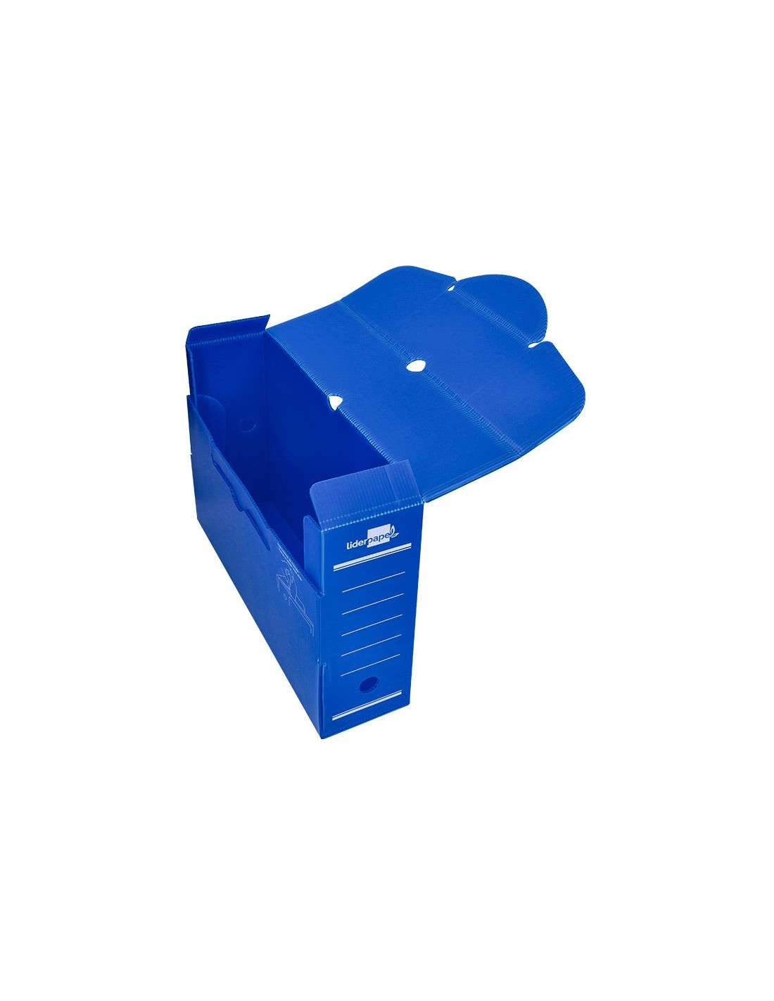 Archivo definitivo fabricado en polipropileno corrugado de 3 mm de espesor, de gran resistencia a la humedad y al agua, de gran durabilidad y fácil montaje. Tamaños folio y folio prolongado.