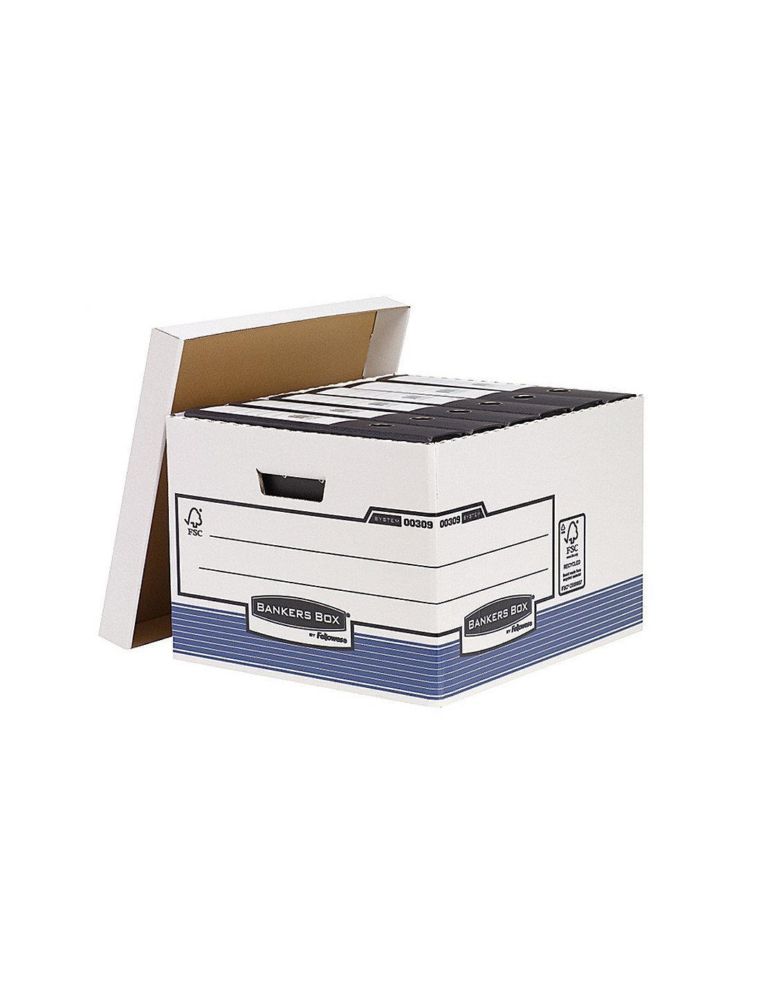 Contenedor fabricado en cartón 100% reciclado un 50% más resistente, con doble grosor en paredes y base. Montaje automático Fastfold . Apilable en altura hasta 4 cajas. 100 % reciclable. Capacidad para 4 cajas de archivo definitivo. Cartón de 515 g/m².