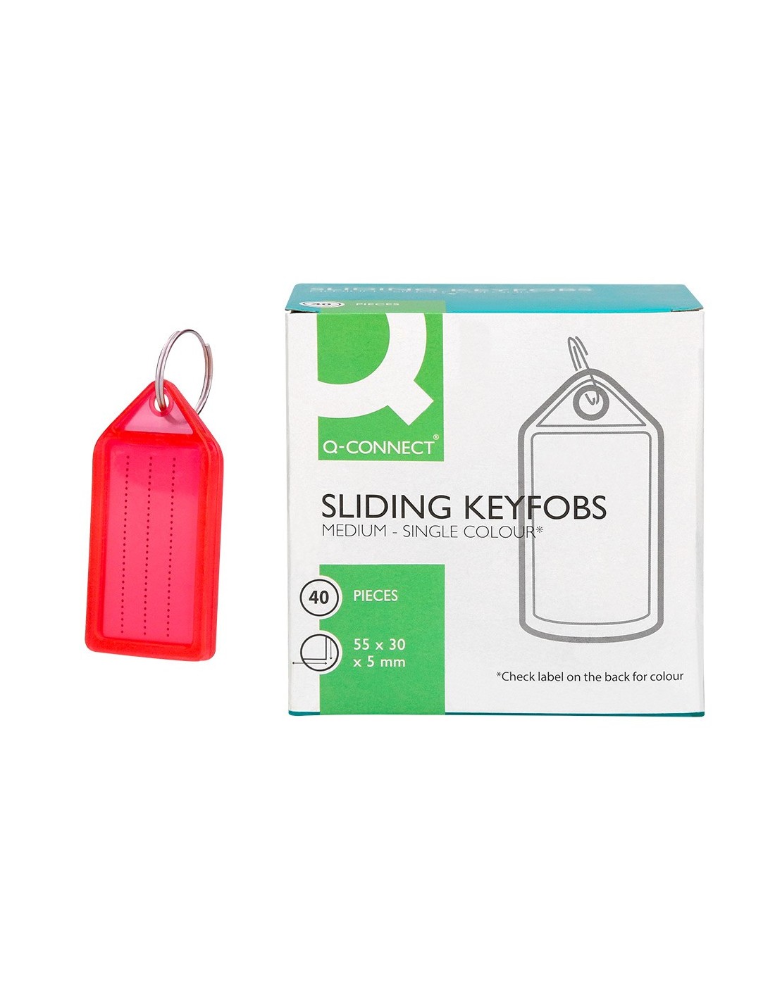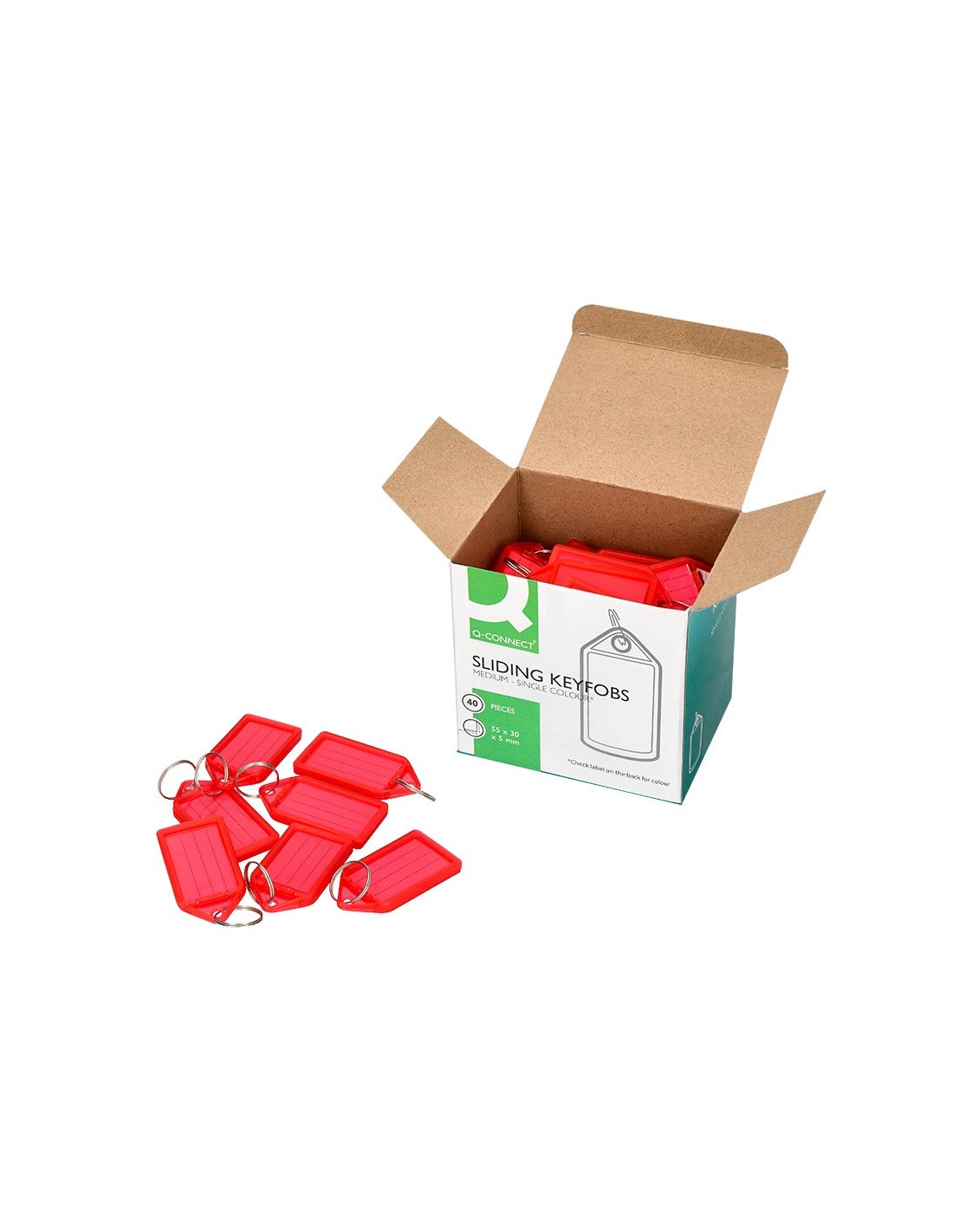 Llavero portaetiquetas Q-Connect Premium. Fabricado en plástico. Color rojo. Caja de 40 unidades.