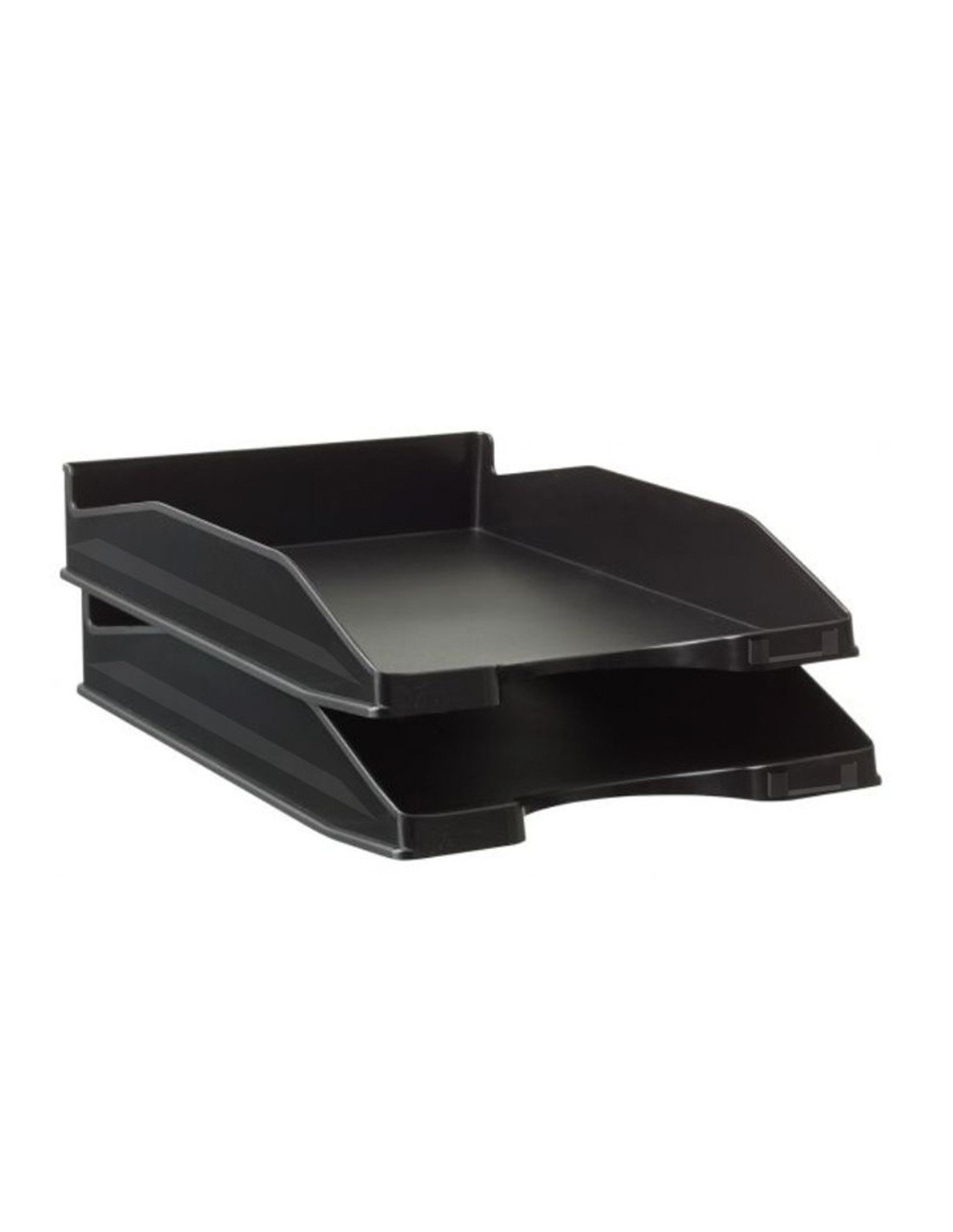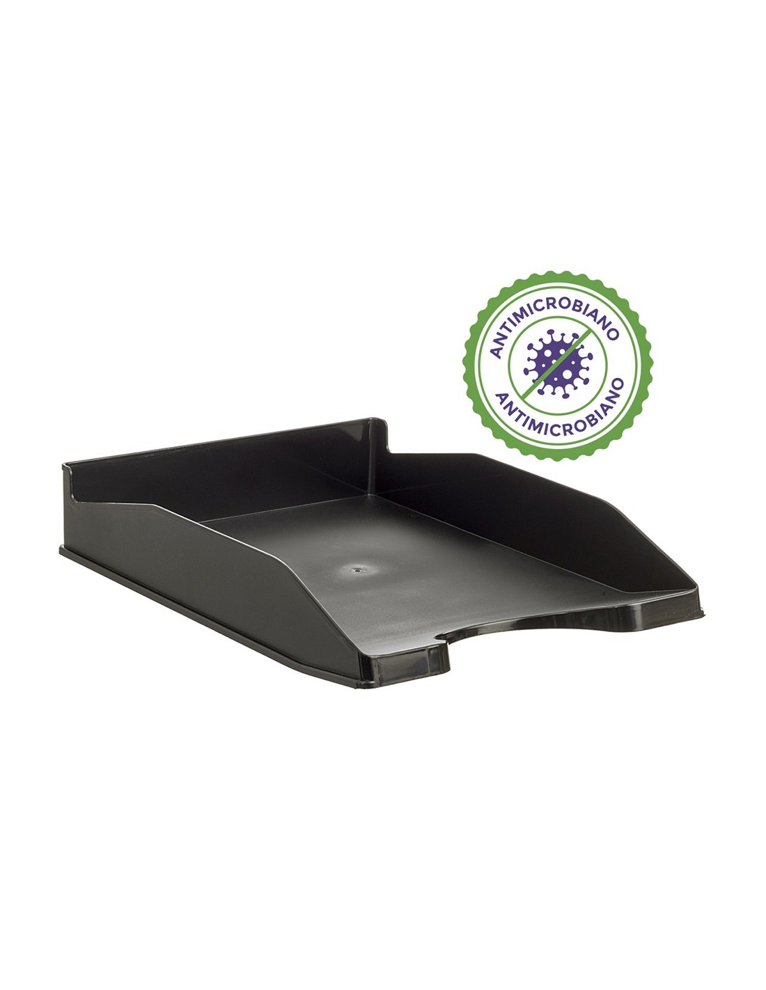 Bandeja de sobremesa antimicrobiana Archivo 2000 opaca. Fabricado en poliestireno de gran calidad con protección antimicrobiana las 24 horas. Superficie más higiénica, segura y duradera, al inhibir el crecimiento de microorganismos permite una mayor durabilidad en el tiempo. Color negro. Medidas exteriores: 345x255x60 mm. Fabricado en España.