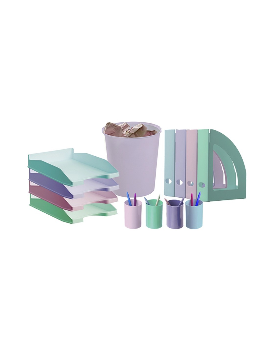 Bandeja de sobremesa sostenible Archivo 2000 Ecogreen pastel. Fabricado en poliestireno 100% reciclado y reciclable. Válida para formatos A4 y folio. Apilable en 3 posiciones, de forma vertical o escalonadamente. Hendidura frontal para facilitar el acceso a la documentación. Color verde pastel. Medidas exteriores: 345x255x60 mm. Fabricado en España.
