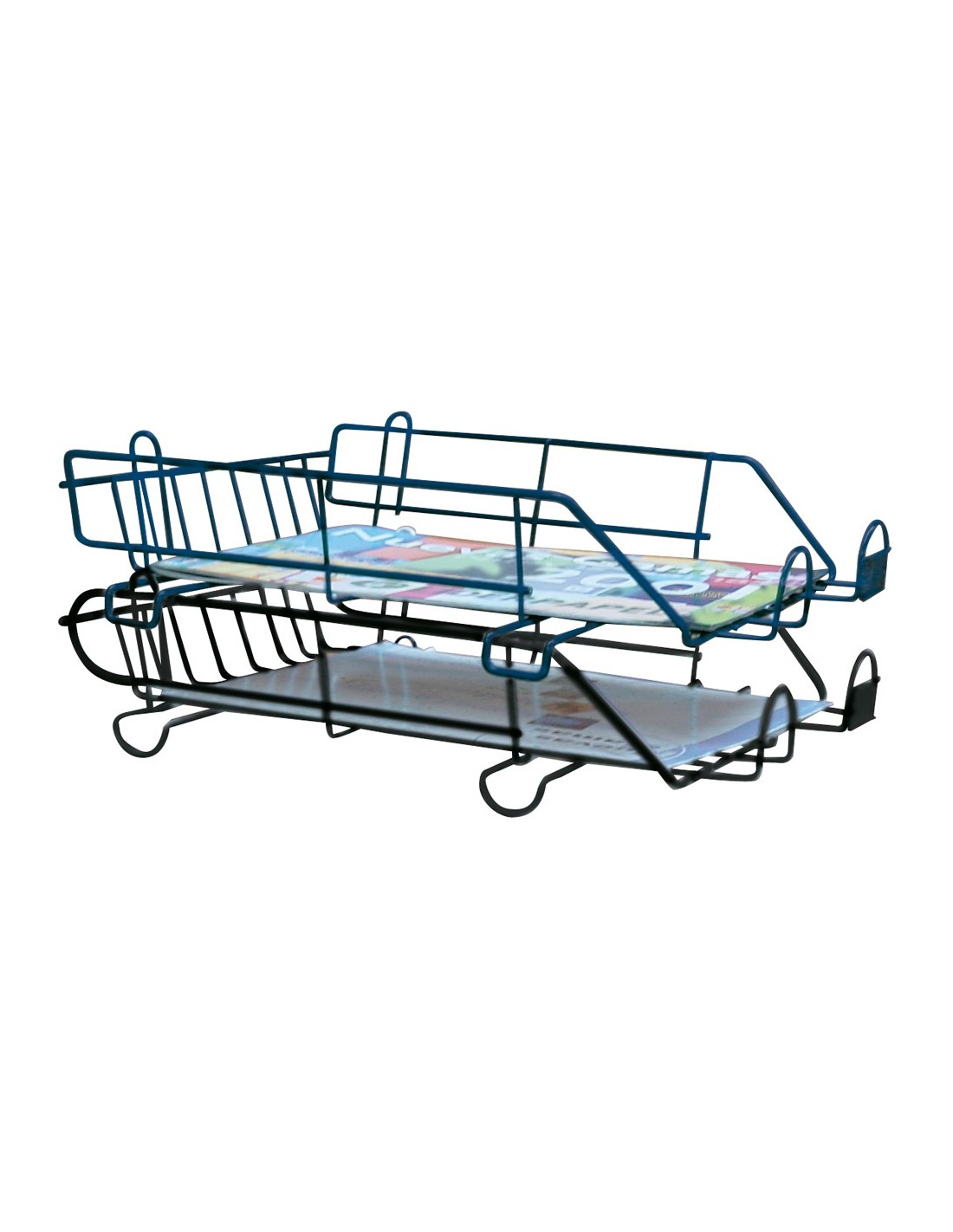 Bandeja metálica, pintada, apilable. Con portatarjeta. Color negro. Medidas: 280 x 85 x 370 mm.