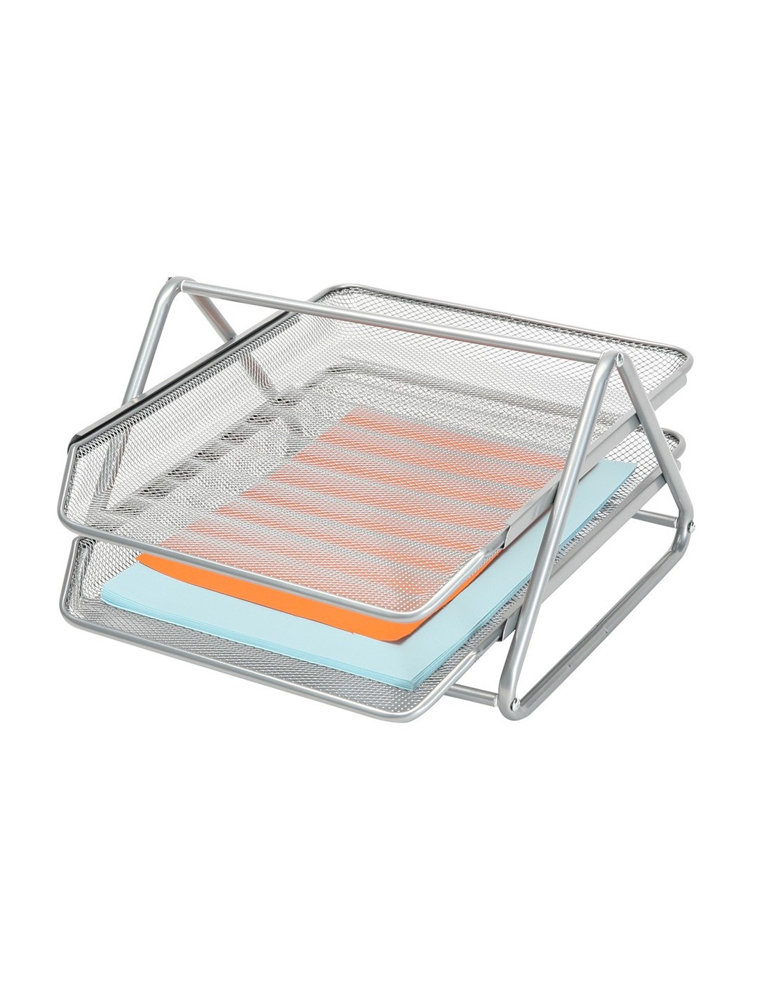 Conjunto de 2 bandejas móviles metálicas de rejilla. En dos colores: plata o negro. Medidas: 185 x 300 x 350 mm.