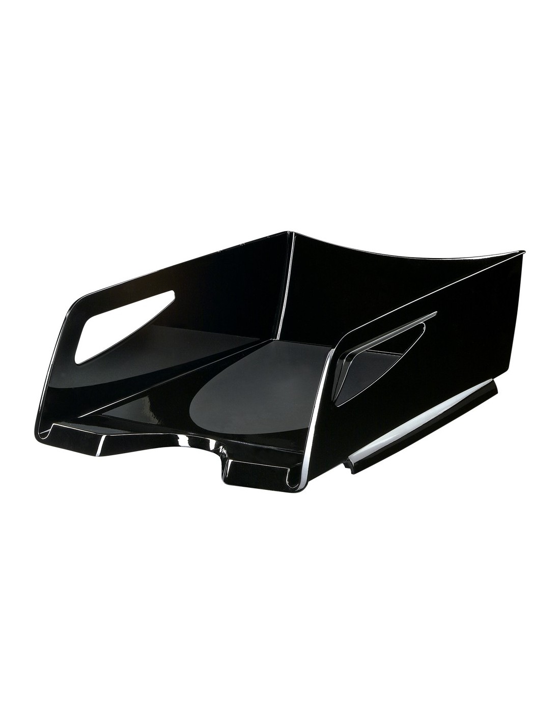 Fabricada en poliestireno. Bandeja muy amplia para los listados y documentos de gran tamaño. Elegante, práctica y muy robusta, sus dos asas le permiten mover la bandeja con mucha facilidad. Apilable. Para documentos DIN A4 y hasta 24 x 32 cm. Medidas: 270 x 115 x 386 mm.