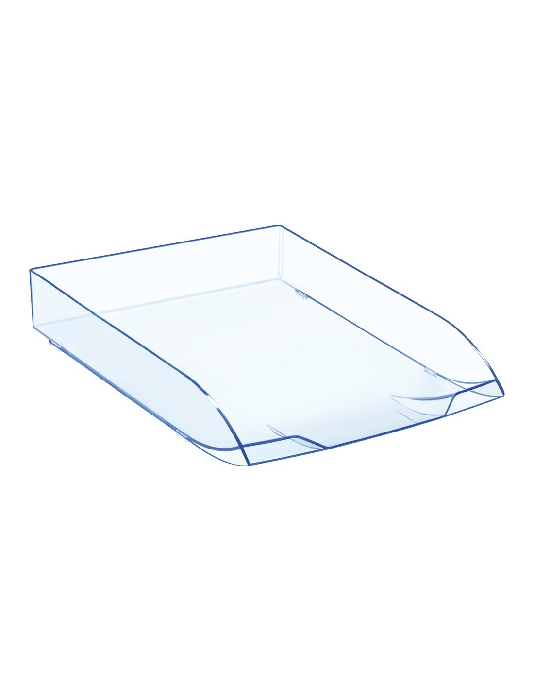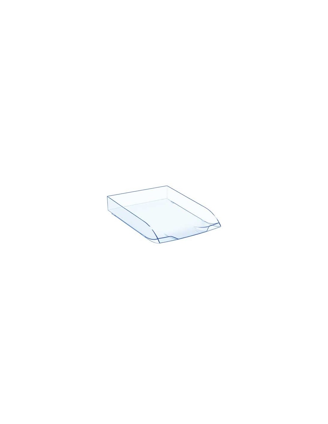 Fabricada en poliestireno. La primera en dos colores: translúcida con bordes en azul. Una bandeja elegante con un estilo sobrio, acabado espejo. Apilable. Para documentos de hasta 240 x 320 mm. Medidas: 270 x 61 x 370 mm.