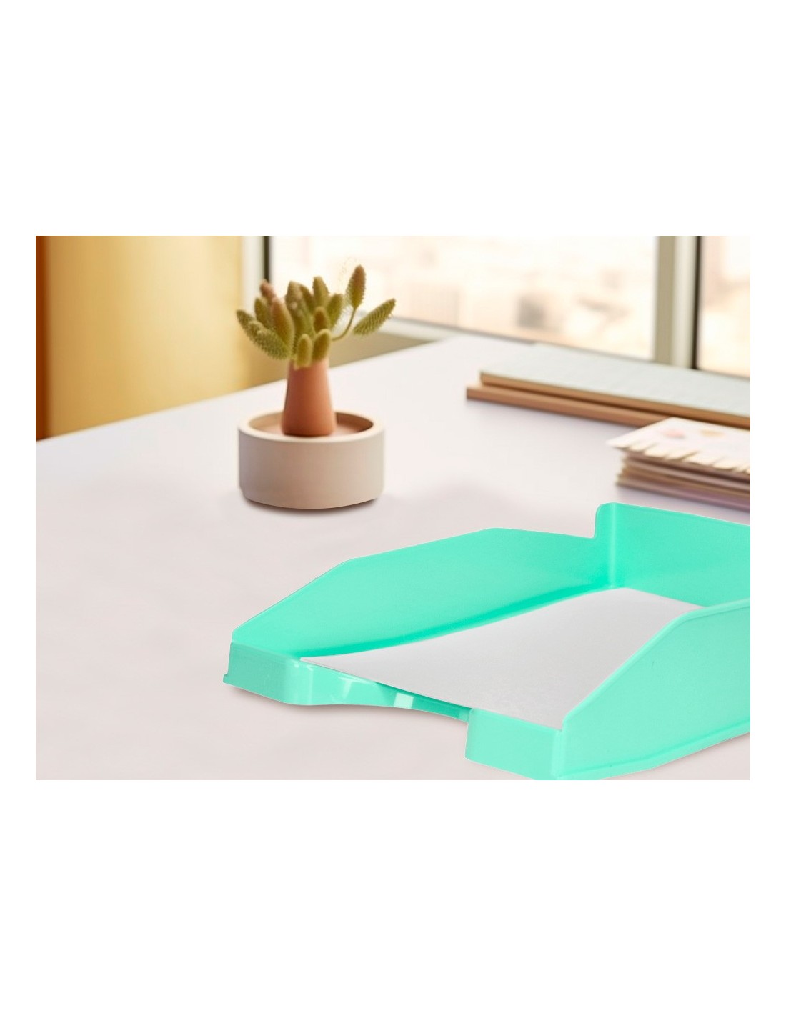 Fabricada en plástico de alta resistencia, para archivar y clasificar documentos. Disponible en colores opacos y transparentes. Hendidura frontal para un fácil acceso. 1600 micras. Medidas: 240 x 70 x 340 mm. Color verde menta.