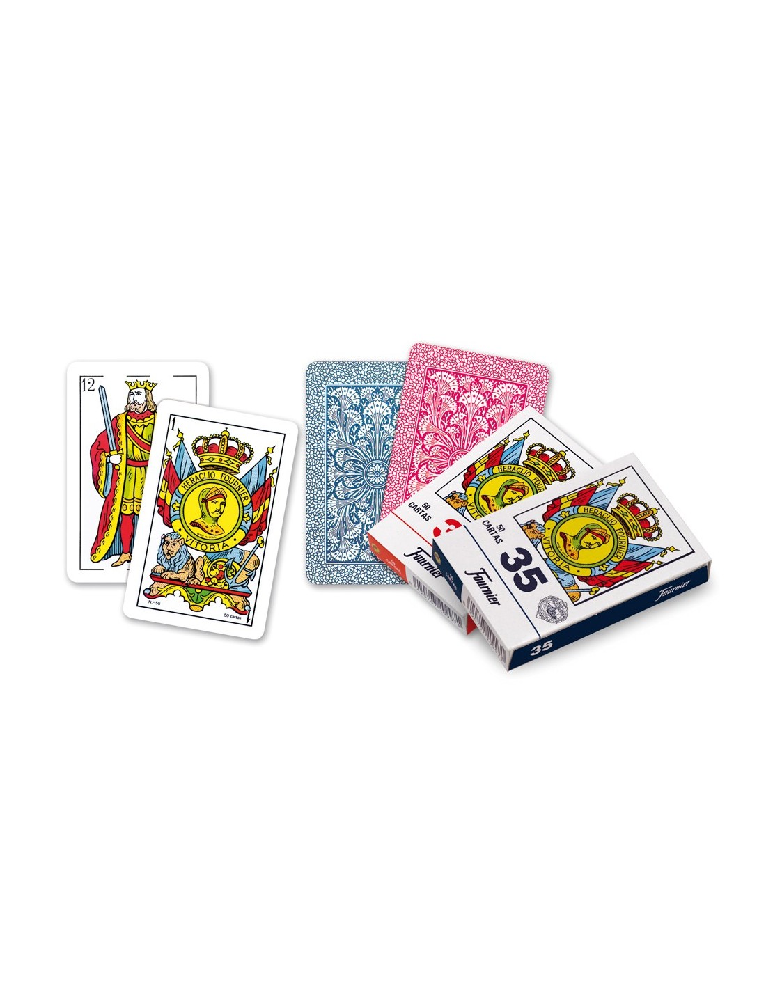 Baraja de 50 cartas. Cartas de cartón de 300 g/m². Medidas: 61,5 x 95 mm.